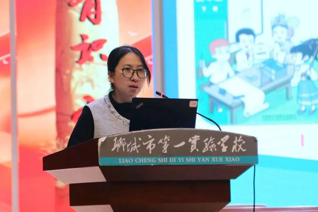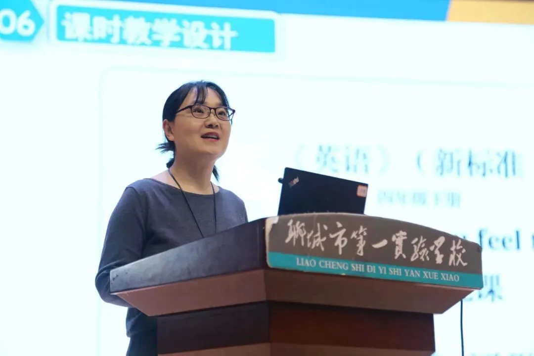 课例展示后,聊城市第一实验教育集团英语教研团队李武爽、孙亚平、王盼盼和王如意四位老师进行了单元整体教学设计的说课,分享团队是如何基于主题意义探究进行单元整体教学的,帮助教师进一步理清本单元的教学脉络。