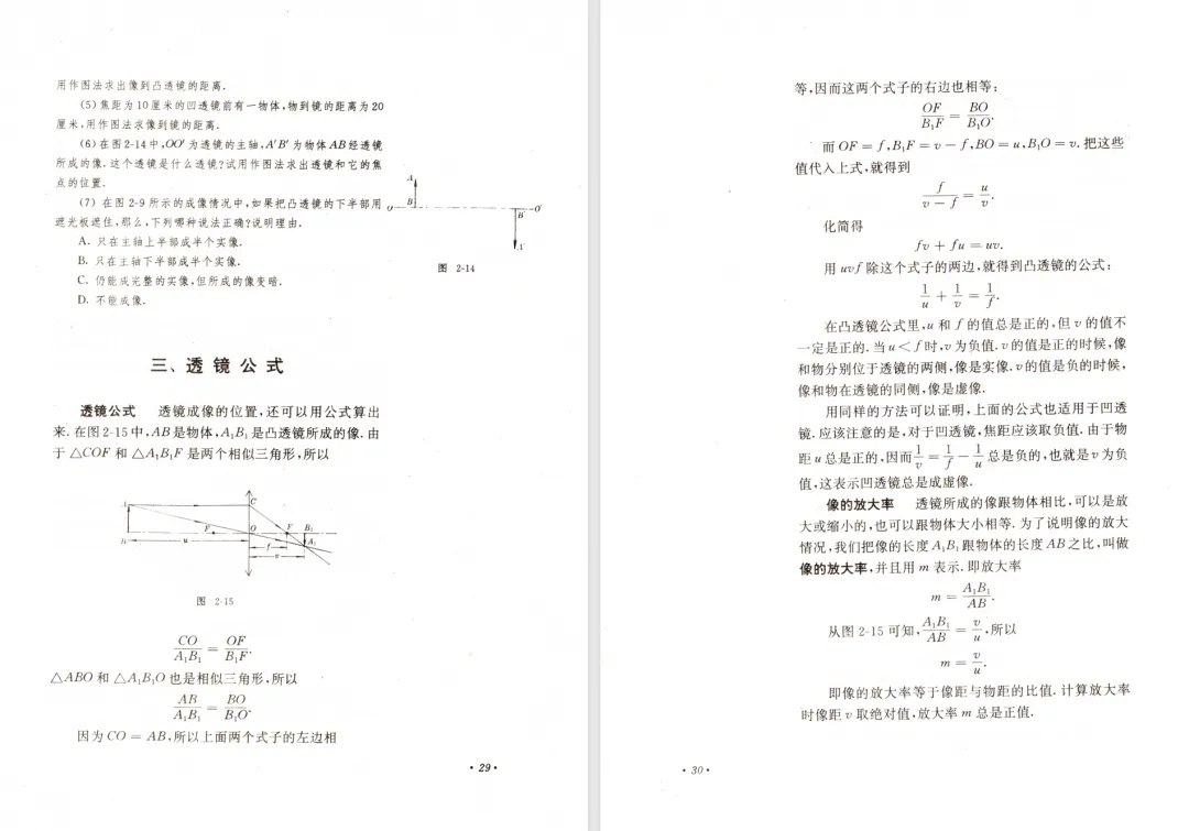 本章介绍透镜成像公式的小节比前面几个版本的教材都要短。