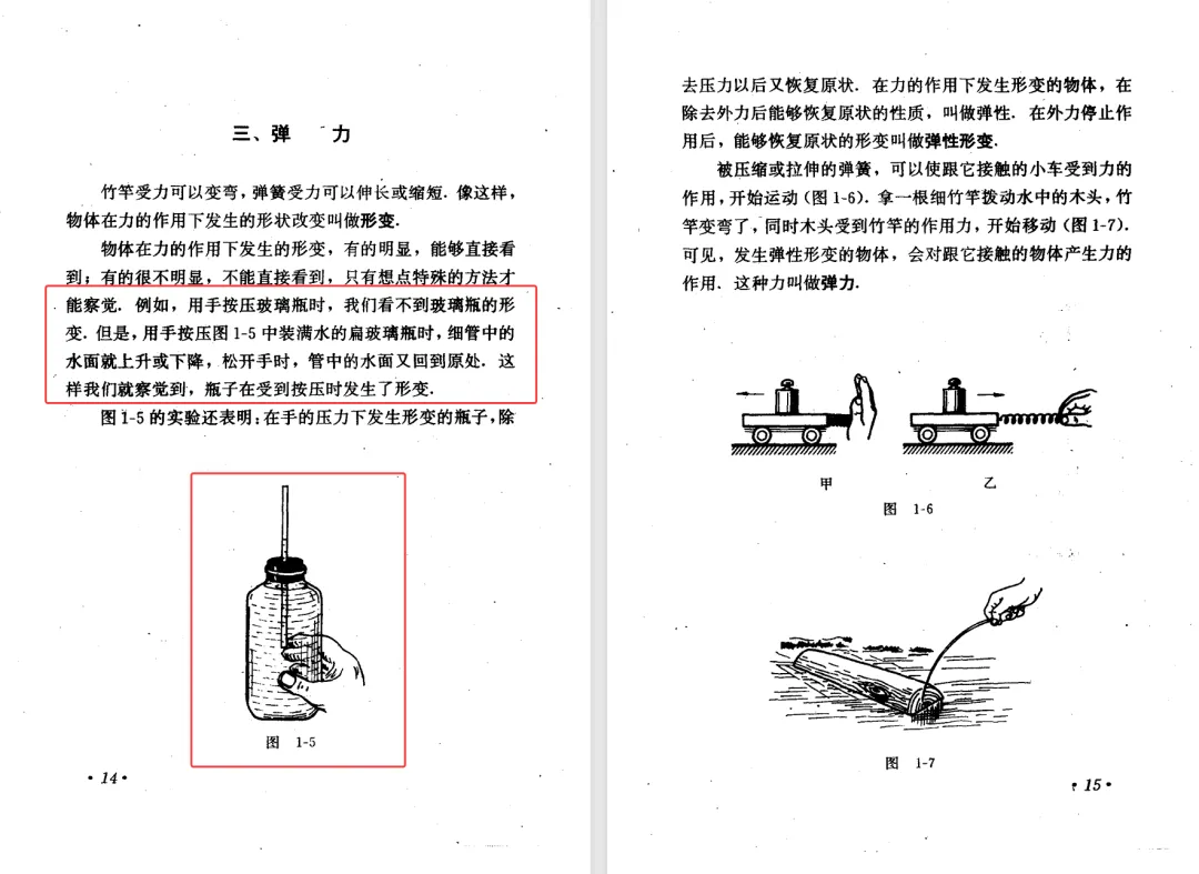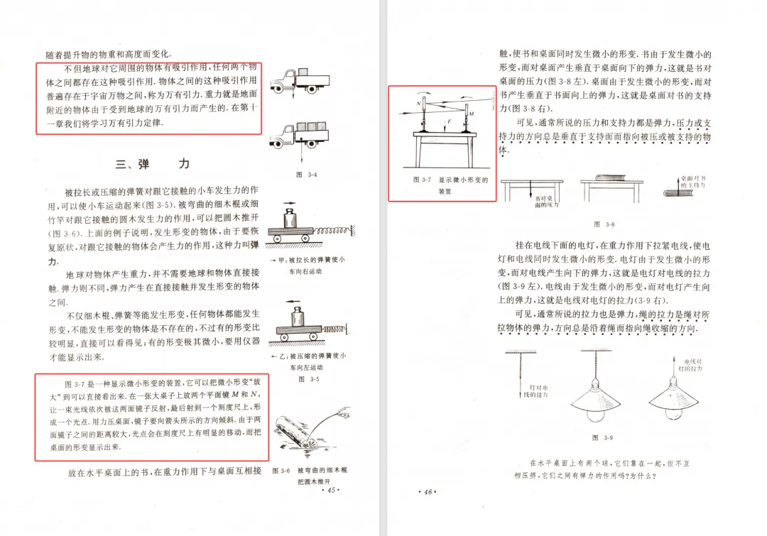 弹力这一节红框所示的内容,在甲种本里是放在阅读材料的。