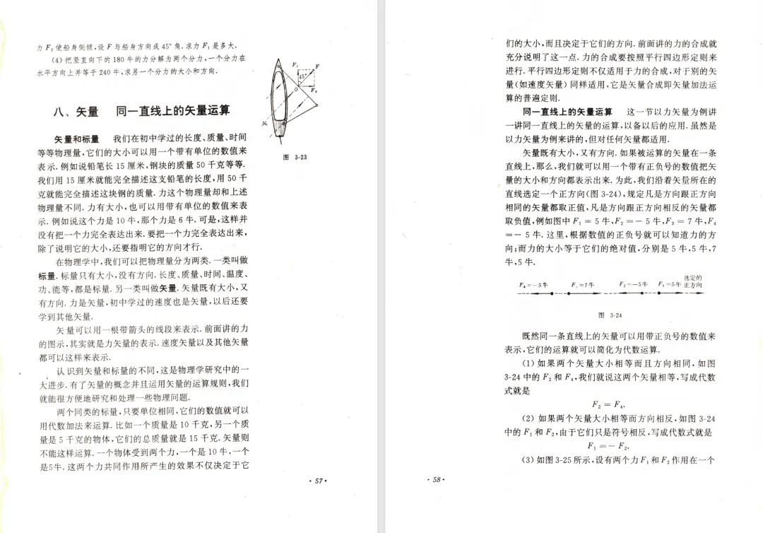 下面的第八节合并了甲种本 标量和矢量、同一直线上的矢量运算两个小节的内容。