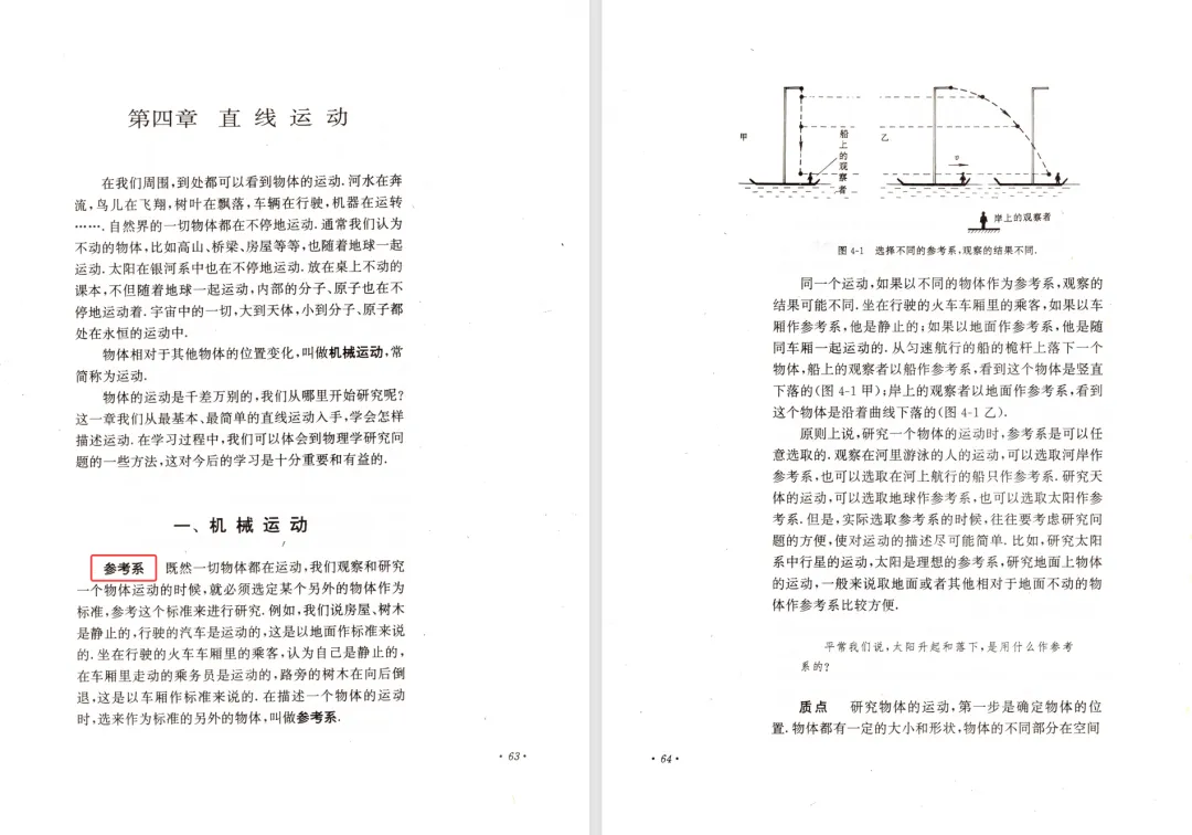 本章第一节,以往教材中使用的参照物被改名为参考系。