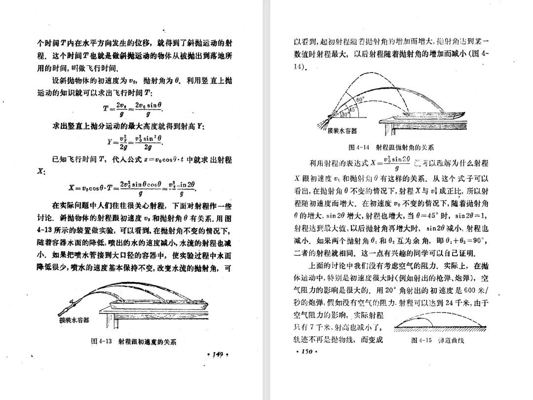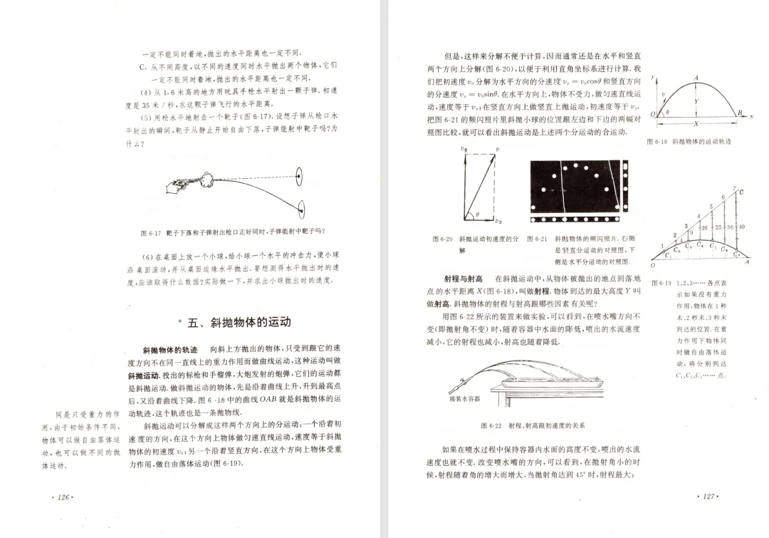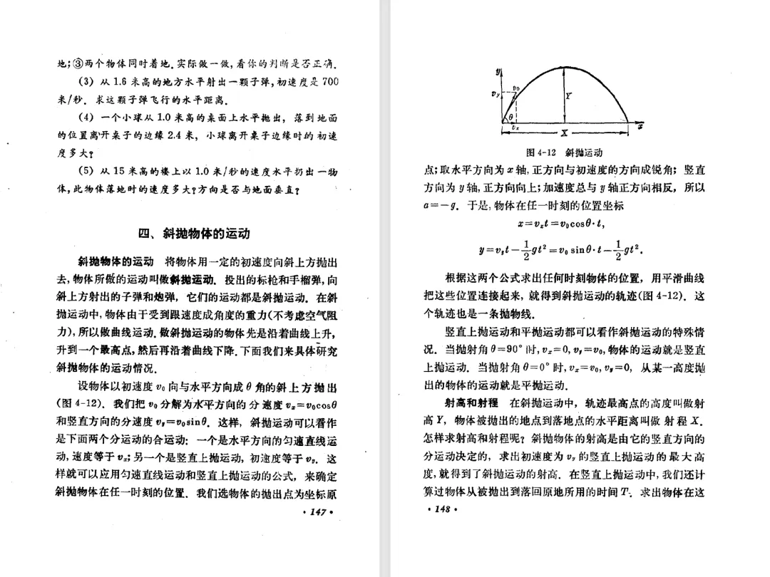 本章介绍斜抛运动的小节没有达到甲种本的水平,只是乙种本和九十年代高中物理的水平。