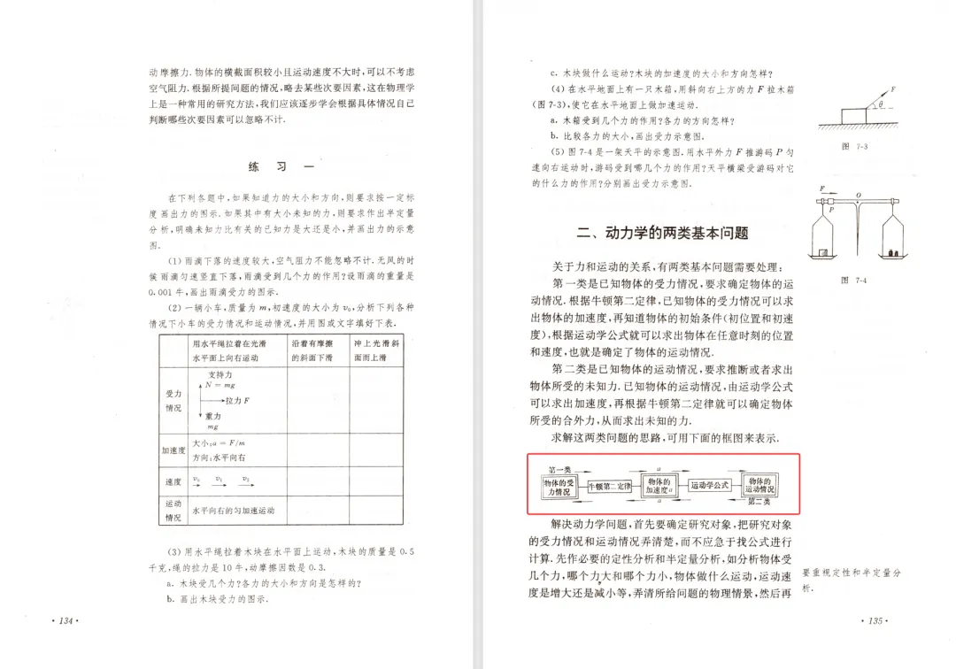 接下来的第二节对应九十年代高中物理选修第一章 第五节 牛顿运动定律的应用(二)。但是,在小节开头,教材对运动学的两类基本问题做了更详细的介绍,还给出了框图。
