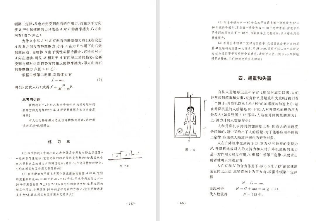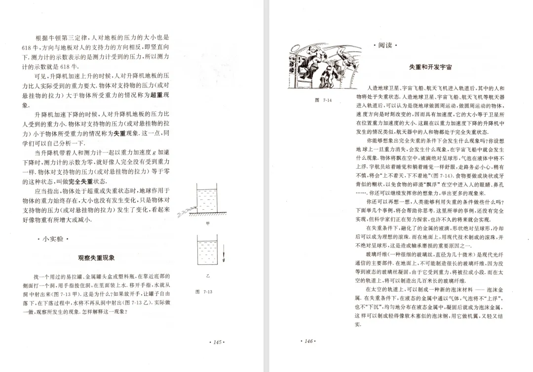 本套教材把超重和失重问题分离出来,用一个单独的小节进行介绍。