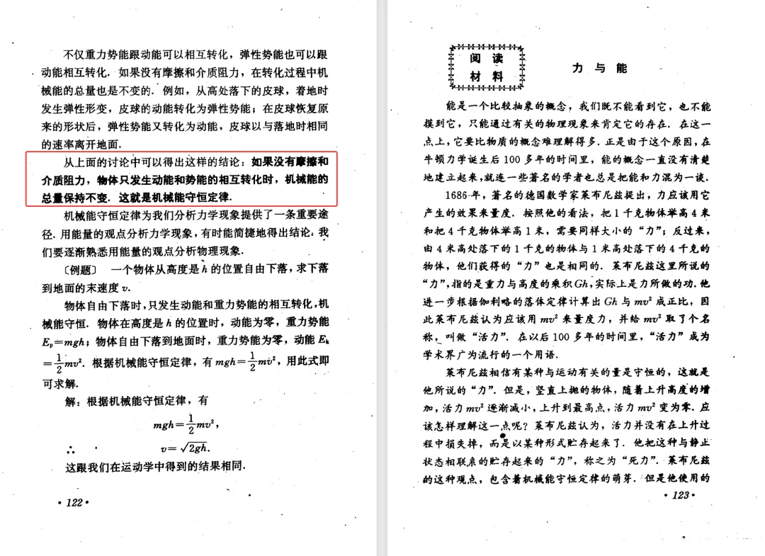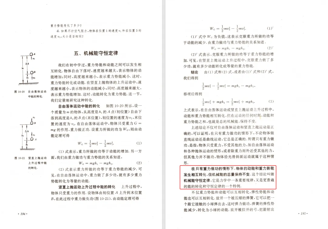 乙种本和九十年代高中物理必修对于机械能守恒定律的表述与上面的描述不同,如下图,下图来自九十年代高中物理必修。