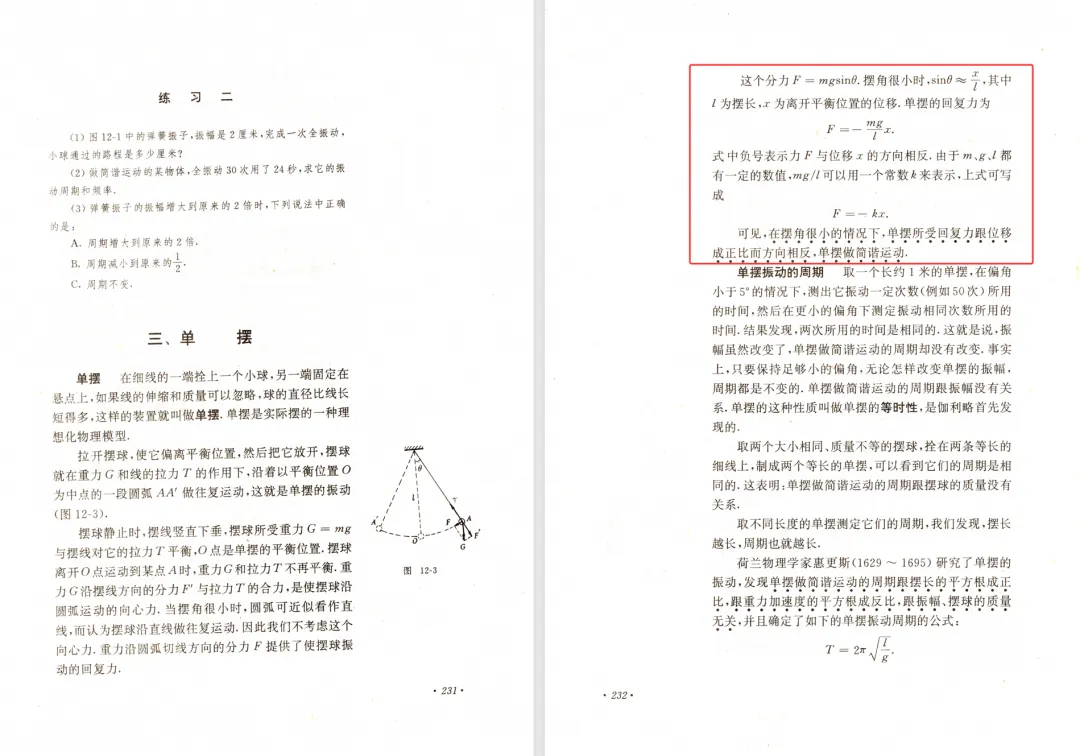 本章加回了甲种本和乙种本中的小幅度单摆是简谐运动的推导。