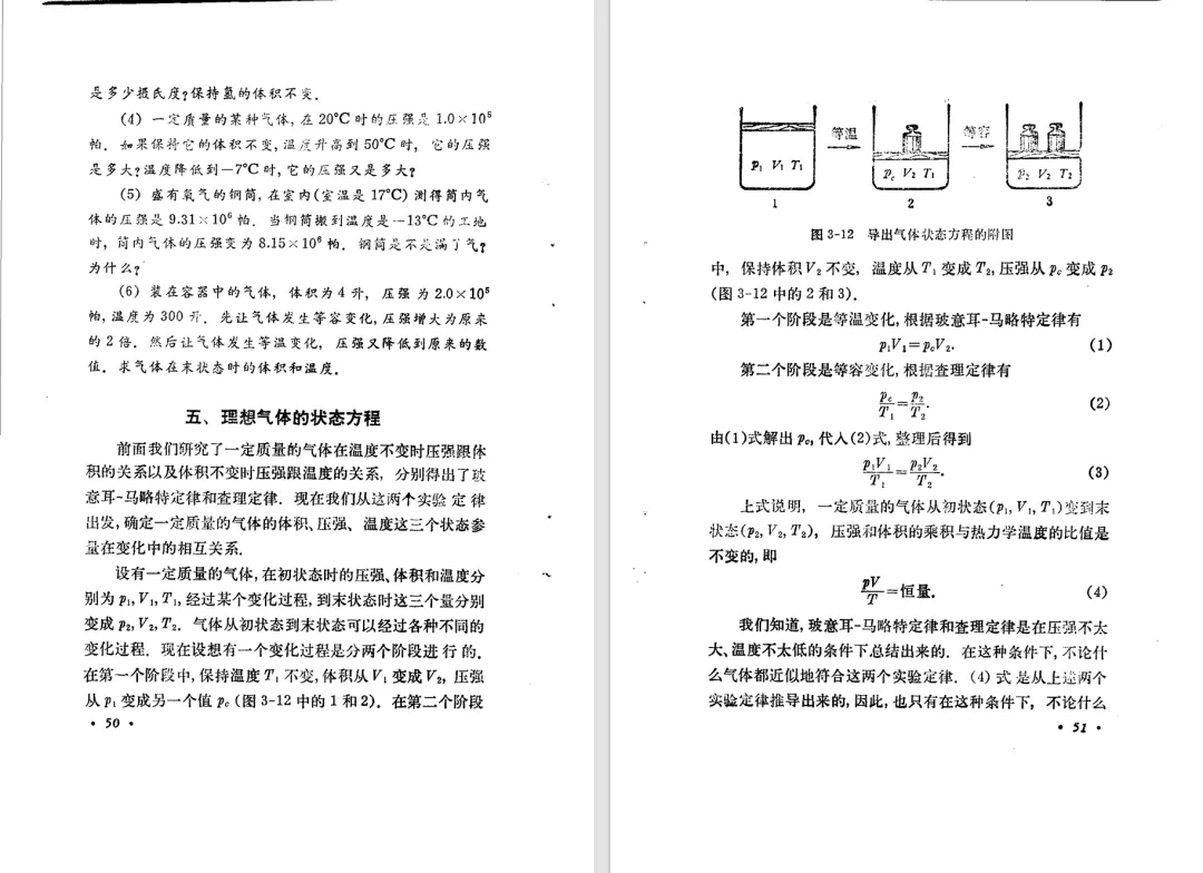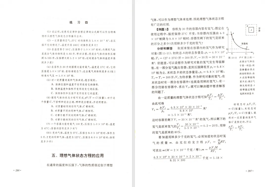 本套教材专门安排了一个小节介绍理想气体状态方程的应用。