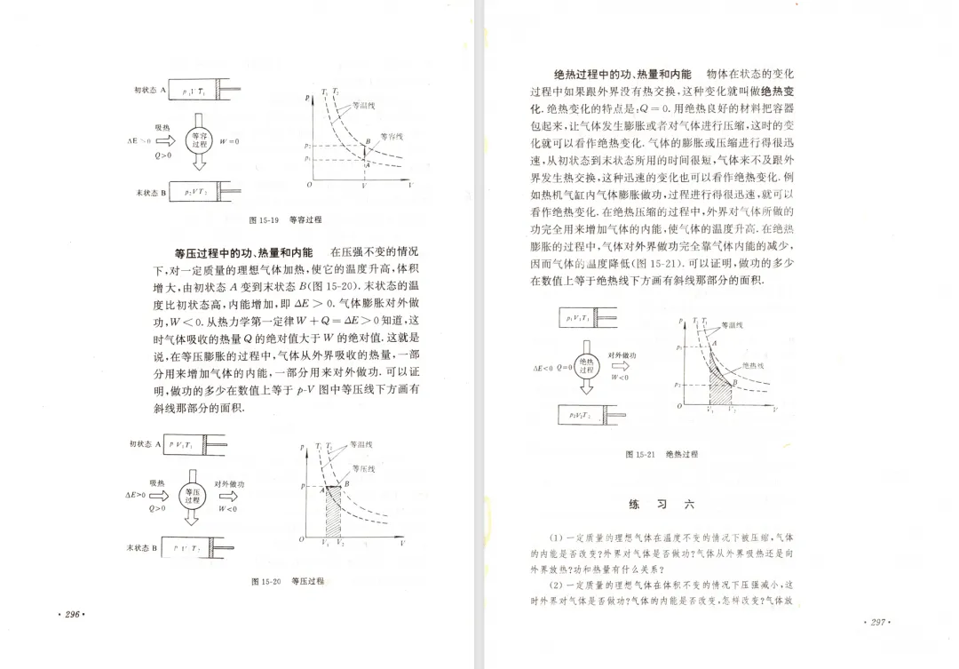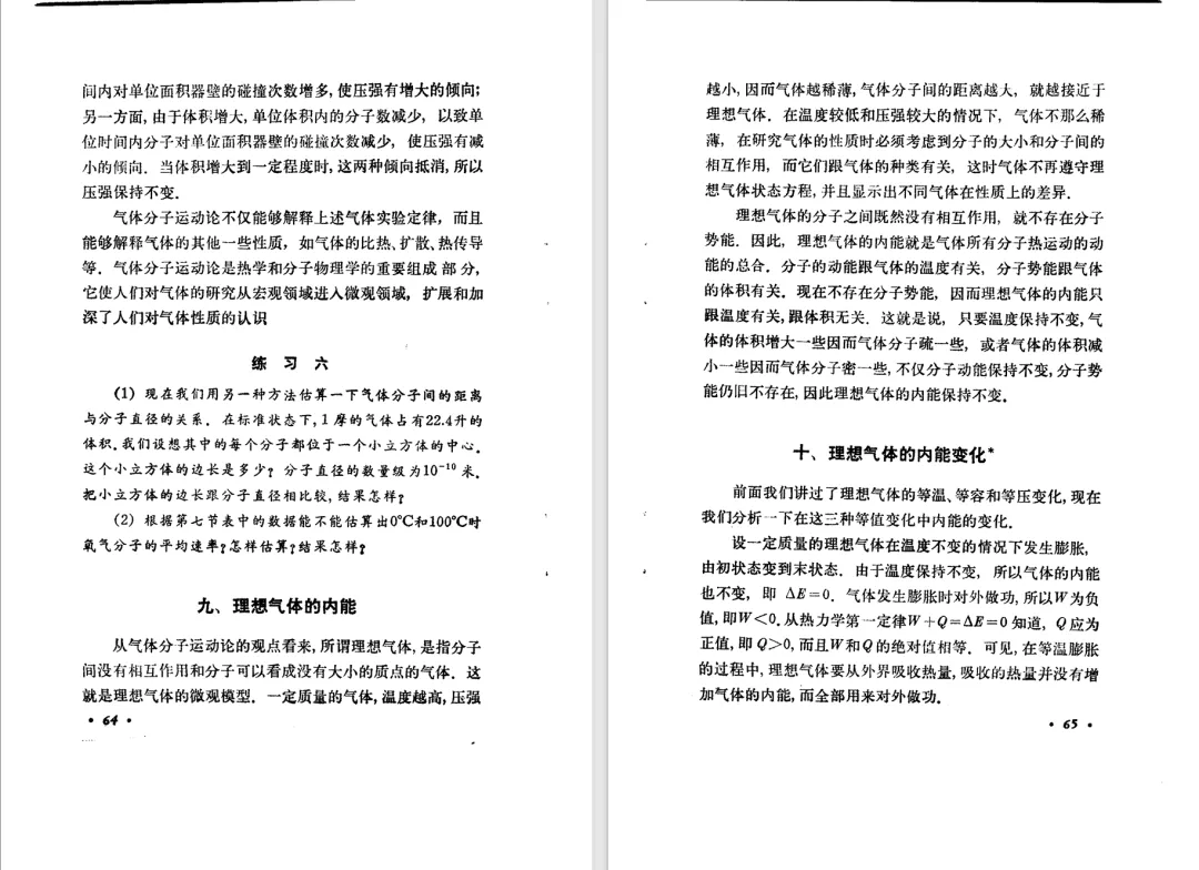 这套实验教材对气体比较重视,不仅安排了理想气体实验定律的小节,还着重介绍了理想气体在变化过程中做功的情况。对比可以发现,这套教材对气体的介绍甚至比甲种本更深。