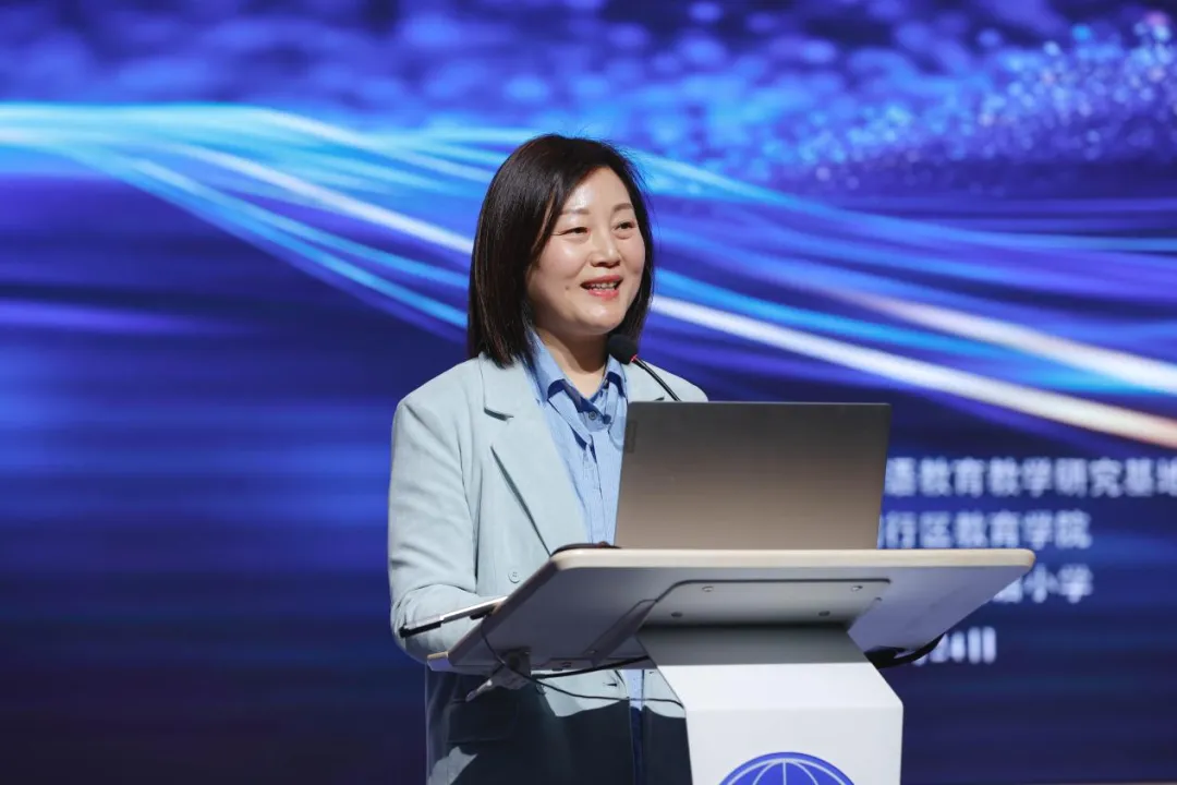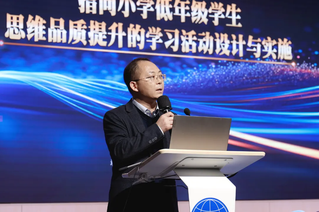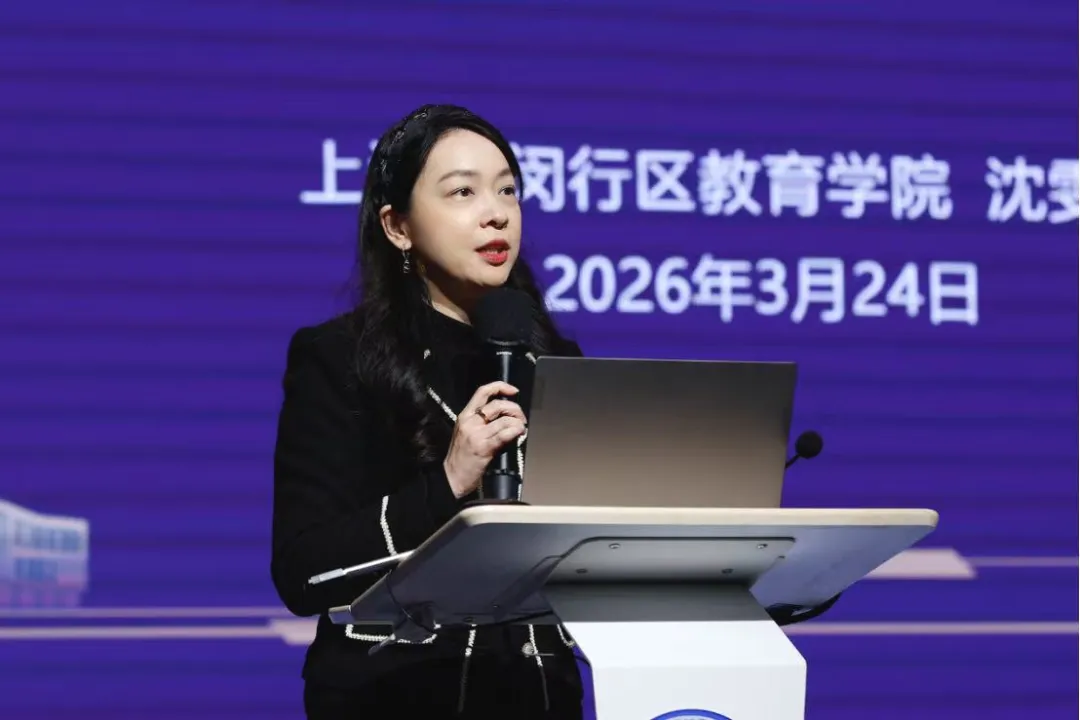 闵行区教育学院小学英语教研员沈雯晴带来“智启童蒙 思行致远——指向小学低年级学生思维品质提升的区域实践与探索”区域分享。她从理念锚定、路径探析、阶段回眸三个维度,系统介绍了闵行区的研究成果。理念层面,确立“思·趣”融合双轮驱动框架,将课标要求转化为低年级可观测的思维培养行为指标,让思维训练融入趣味学习场景;路径层面,提炼出“境·问·动”三位一体课堂教学实施模型,通过真实情境浸润、阶梯问题驱动、深度实践探究,让学生在沉浸式体验、高阶问题思考、知行合一的实践中锤炼思维;阶段层面,区域教研实现从“单点探索”到“聚识共研”的转变,教师教学视角更聚焦思维培养,学生思维从“被动应答”向“初萌能动”进阶,为后续研究奠定坚实基础。