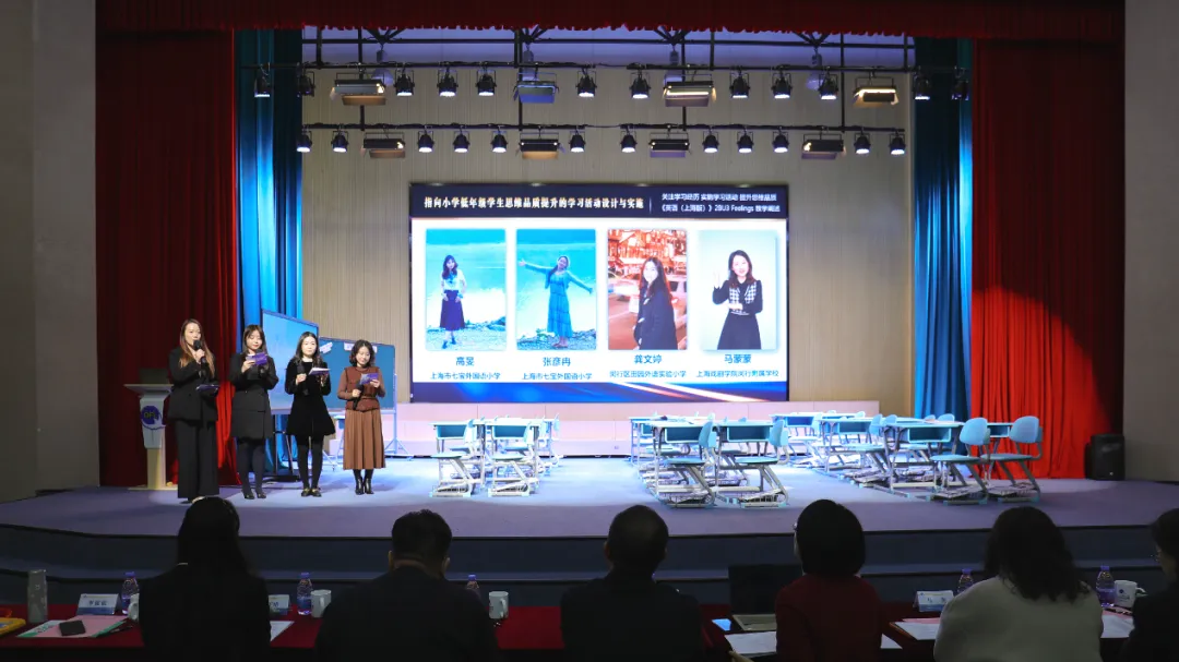 在教研论坛环节,上海市民办万源城协和双语学校侯明翠、闵行区平南小学殷克清、闵行区七宝镇明强小学赵燕华、闵行区莘庄实验小学张倩四位教师,以“关注学习经历 实施学习活动 提升思维品质”为核心,从主题、活动、实践三个维度展开深度研讨。四位教师结合二年级上册多个单元教学案例,提出以主题为引,锚定单元主题创设真实语境、聚焦真实问题设计递进问题链,为思维生长提供土壤与方向;以活动为径,设计多元互动活动、凸显学生主体地位,让思维在丰富体验与自主建构中发展;以实践为场,依托Mini-project开展项目探究、推进多学科融合,让思维在真实任务解决中厚植深度、在跨界实践中延展广度,构建起从激活到发展再到提升的思维生长完整脉络。