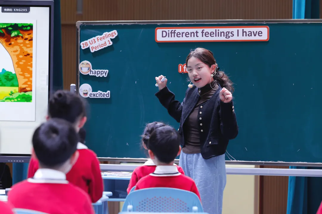 随后,上海市七宝外国语小学夏雪老师带来《Feelings》第一课时课堂教学展示。课堂紧扣单元主题,以“情绪罐罐”为课时任务载体,创设连贯真实的教学情境,通过多感官体验、阶梯式任务、互动式表达,引导学生感知不同场景下的情绪变化,学习情绪主题词汇,尝试表达情绪背后的原因。课堂充分凸显学生主体地位,设计了贴情绪贴纸、分享校园情绪故事等丰富活动,让学生将教材知识与生活经历相联结,在真实语用中实现思维品质与语言能力的同步提升,生动诠释了“思维品质提升融入低年级英语教学”的教学理念。
