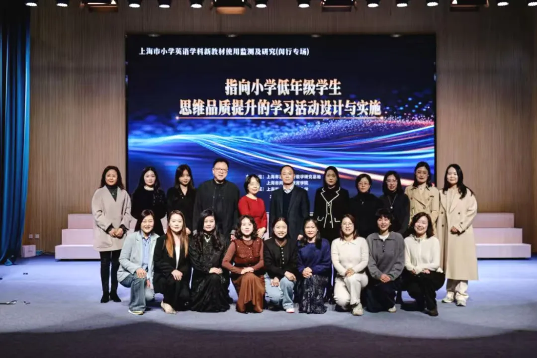 2026年3月24日下午,以“指向小学低年级学生思维品质提升的学习活动设计与实施”为主题的上海市小学英语学科新教材使用监测与研究(闵行专场)活动,在上海市七宝外国语小学圆满举行。本次活动由上海市英语教育教学研究基地、上海市闵行区教育学院联合主办,上海市七宝外国语小学承办,上海市各区小学英语教研员及教师代表齐聚一堂,一起探寻让思维品质在低段教学中“看得见、摸得着、长得壮”的可行之路。本次活动活动由七宝外国语小学常务副校长、上海市小学英语新教材核心编者王晓燕主持。