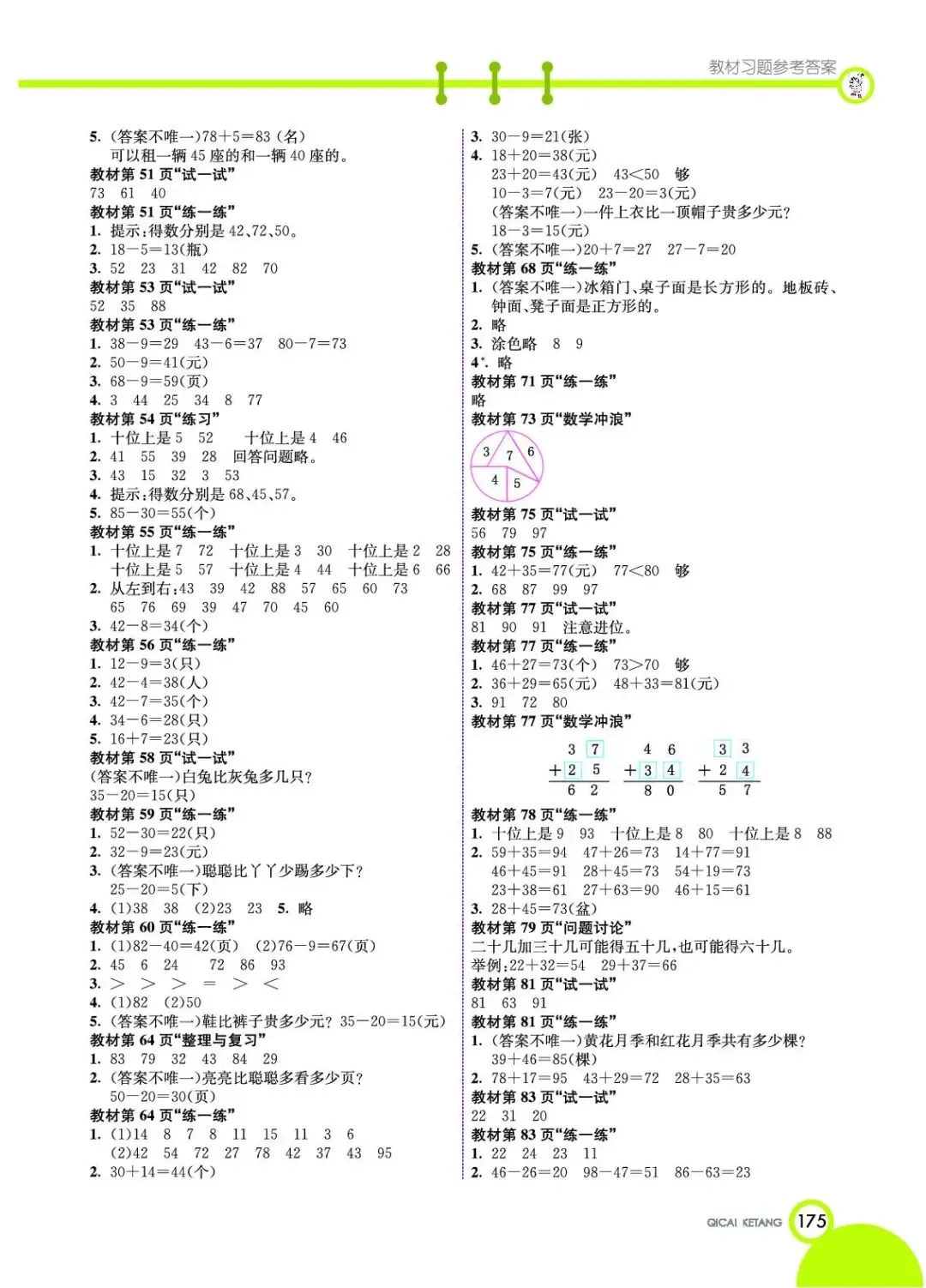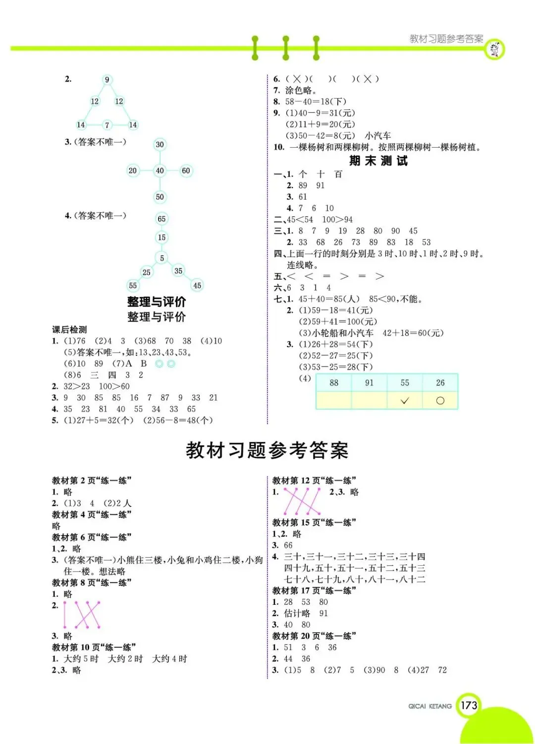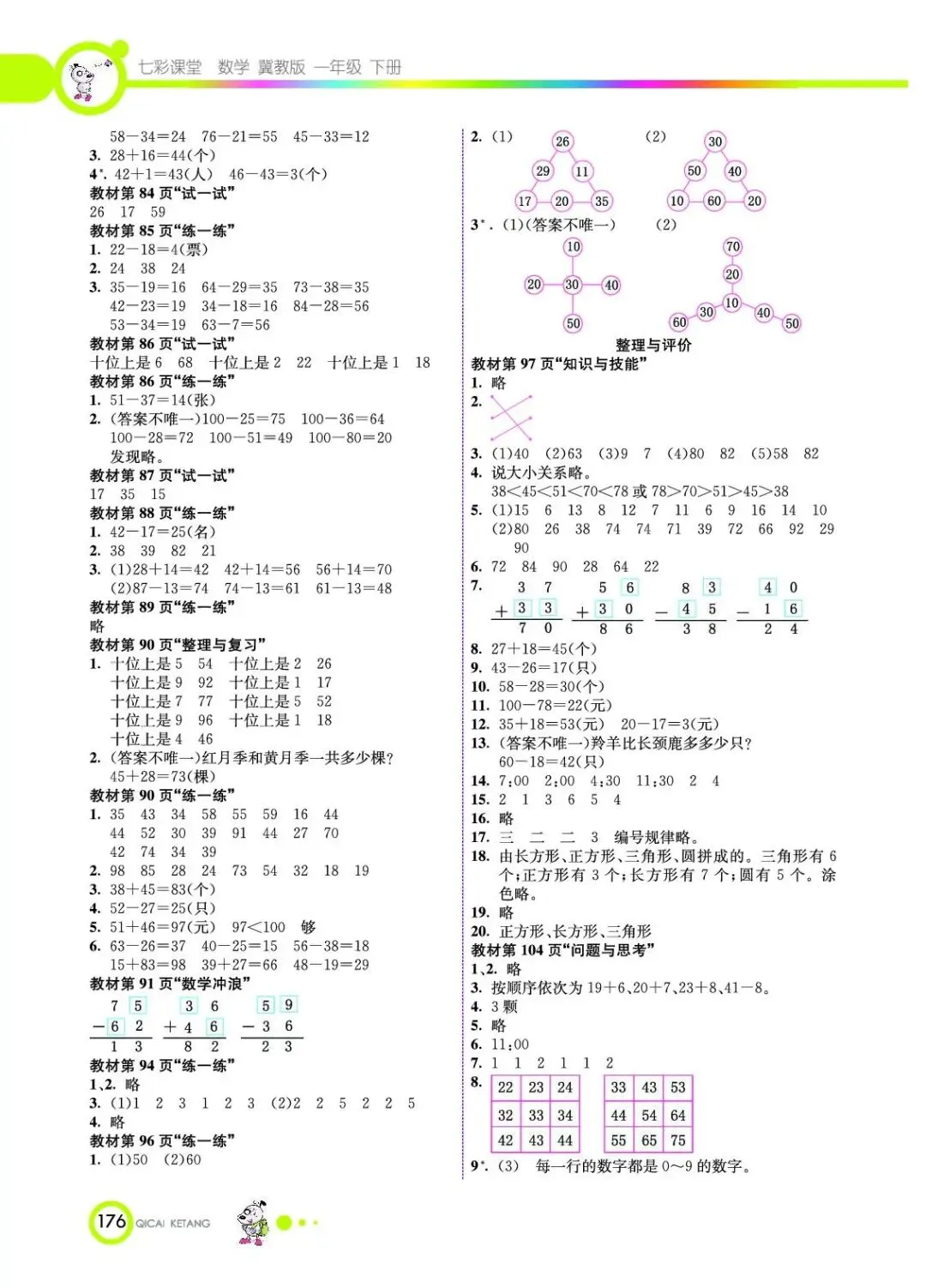 小学教材习题答案一年级下册1年级下册冀教版数学课本参考答案冀教版