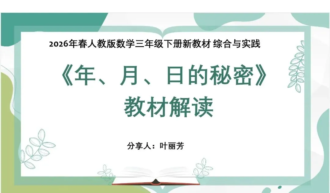 叶丽芳老师围绕三年级下册《年、月、日的秘密》展开深度教材解读。她指出该单元是衔接时间认知与数学应用的关键,新版教材凸显三大亮点:强化实践操作、聚焦数据意识、注重整合应用。她从课标解读、教材分析、学情分析等六个维度,紧扣“三会”目标,通过层层递进的活动设计,落实推理、模型、应用等核心素养,为课堂教学提供了从理论到实践的完整、可落地的指引。