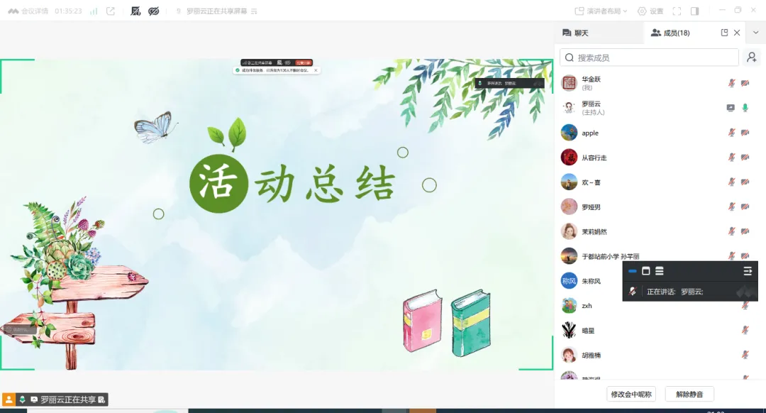 分享结束后,工作室主持人张小金老师对本次活动进行了总结。她高度肯定了主讲教师的精心准备与精彩呈现,并鼓励全体成员要聚是一团火,相互照亮,共赴成长;散是满天星,辉照本校、县教师,促进成长。