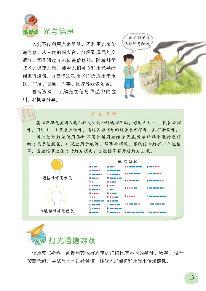 ,然后发送 电子课本 六年级是小学科学学习的收官阶段,更是衔接初中理化生知识的关键过渡期,2026秋粤教科技版六年级科学上册新教材,紧扣2022版义务教育科学课程标准,延续“探中学、做中学”的核心理念,编排4大单元、20余节课,知识点兼具系统性、探究性和衔接性,难度贴合六年级孩子抽象逻辑思维成熟的认知特点,侧重培养实验设计、逻辑推理、综合应用和知识整合能力,电子版教材高清可打印,方便孩子预习、复习,助力家长高效辅导、老师精准备课,为初中科学学习筑牢基础。全单元核心知识点精准拆解,结合实验细节与考点,通俗易懂且实用性强:第一单元《光》,核心探究光的传播与应用,引导孩子认识光在同种均匀介质中沿直线传播,通过小孔成像、皮影戏等实验理解其原理,掌握光的反射规律,了解平面镜成像“等大、等距、左右相反、虚像”的特点,学会制作简易潜望镜,区分自然光源与人造光源,明白月光不是光源(仅反射太阳光),探究光的色散现象,知道白光是由多种色光组成,同时掌握保护视力的科学方法,适配初中光学基础知识点衔接。第二单元《机械好帮手》,围绕简单机械展开,重点学习杠杆、轮轴、滑轮、斜面四大类机械,认识杠杆的支点、动力点、阻力点三要素及平衡条件,能区分省力杠杆(开瓶器、羊角锤)、费力杠杆(镊子、筷子)和等臂杠杆(天平),了解轮轴(门把手、方向盘)、滑轮(定滑轮改变方向、动滑轮省力)的工作原理,知道斜面坡度越小越省力,螺丝钉的螺纹是斜面的变形,动手制作简单机械模型,培养工程设计与动手能力。第三单元《人体“司令部”》,解析神经系统的组成与功能,知道大脑是人体的高级神经中枢,控制感觉、语言、运动、记忆等活动,了解脑、脊髓、神经的协同作用,掌握神经信号“刺激→感受器→传入神经→神经中枢→传出神经→效应器”的传导路径,通过尺子下落抓握实验测量反应时,探究影响反应时的因素,学会保护大脑和神经系统的科学方法,建立健康生活意识。第四单元《遗传与进化》,探讨生命的延续与演变,区分遗传(子代与父代相似,如单双眼皮、酒窝)与变异(子代与父代差异,如身高、肤色)现象,了解达尔文自然选择学说的核心的要点,认识化石的作用(证明生物演化、大陆漂移),知道恐龙灭绝的主流假说,探究生物适应环境的特征,培养尊重自然、热爱生命的意识,衔接初中生物遗传变异基础知识点。整套教材每节课都配套探究实验、观察记录和实践任务,兼顾知识传递、能力培养和初高中衔接,适配六年级科学收官进阶的核心需求。