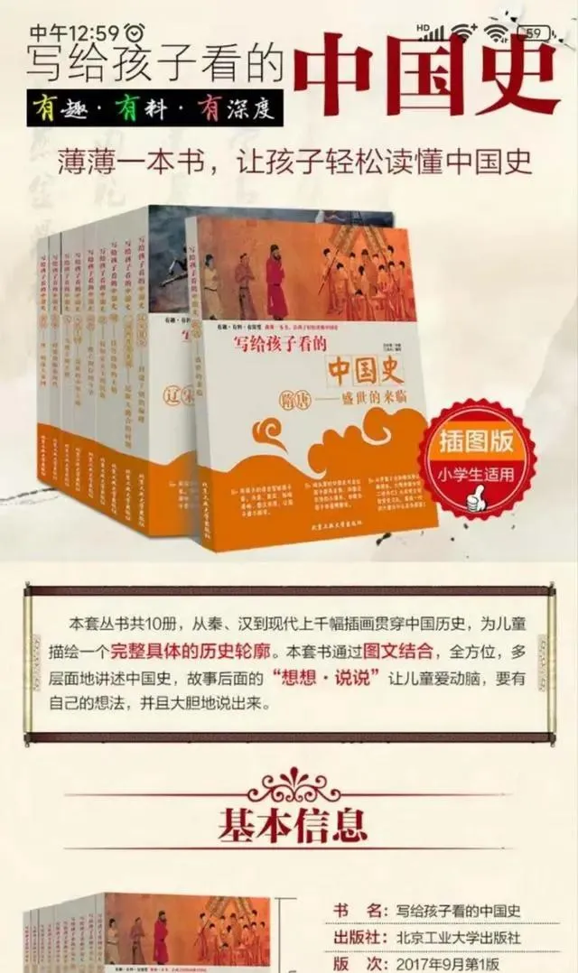 这十本把“有趣”“有料”“有深度”几个字打得又大又亮,实际内容却连基本史实都能出错。北京工业大学出版社做了这套东西,打广告打得热火朝天,还特意说“让孩子轻松读懂中国史”,说得真好,谁知道孩子轻松过去,心里装进的是一肚子歪曲史实。那会儿家里人买书,图的就是正经八百的知识,现在倒好,外表包得漂漂亮亮,里面跟裹着夹生馅儿似的,嚼不烂还容易噎着。