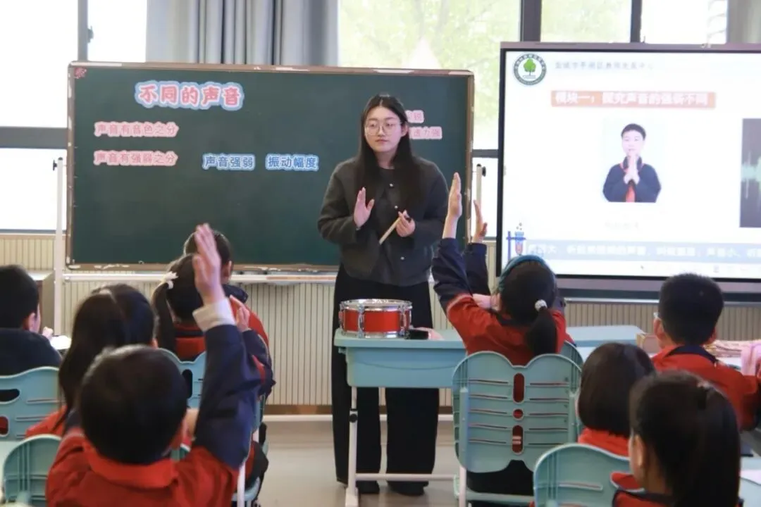 秦老师执教《不同的声音》一课以探秘不同的声音为探究主线,层层递进、学玩结合,在动手实验与聆听辨析中,带领学生完整经历“感知—探究—应用”的科学学习过程,本课分为三大模块: