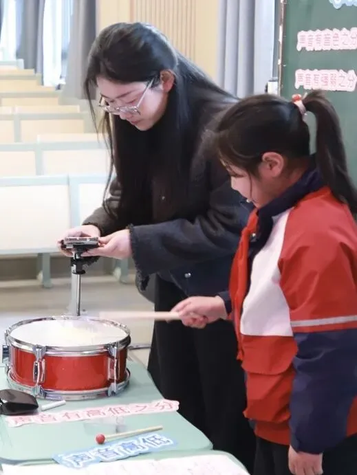 模块二:慧探究,解密声律。通过跺脚、拍手、示波器观察、鼓面与钢尺实验,借助铝板琴、钢尺、粗细橡皮筋实验,总结声音强弱和高低与振动的关系。并结合编钟、竖琴实现知识迁移。