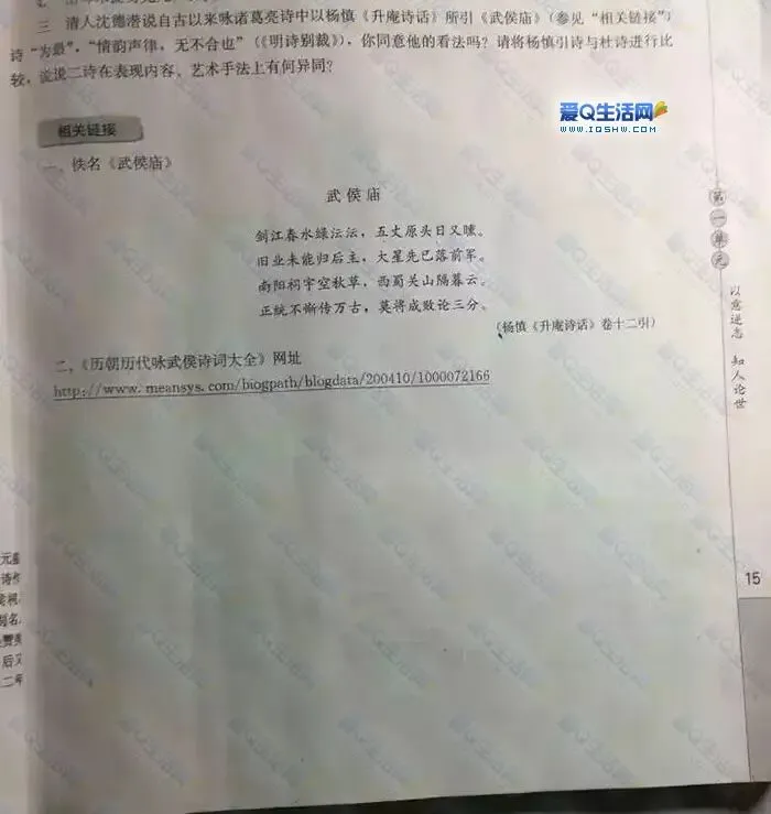 2:请同学们 翻到第15页,今天我们学习一下这首 武侯庙 !