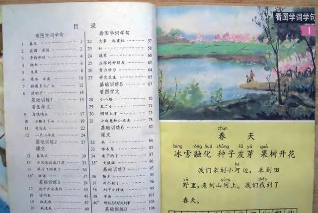 刚看到这组老课本图片的时候,我先注意到的,不是课文内容,而是那股**“旧书感”**。封面有点发黄,纸页边缘起了毛,颜色也不是现在那种亮得发光的印刷色,可就是这种略旧的感觉,反而让人心里一动。很多80后、甚至70后看到这些画面,估计第一反应都差不多:这不就是当年开学时,刚发到手里的语文书吗?