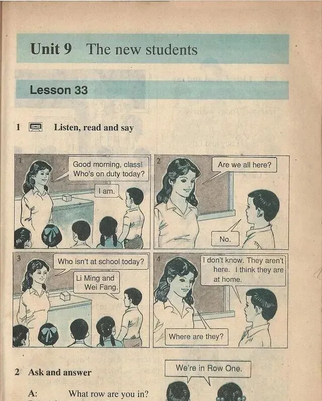 每次点名,谁没答上来老师就盯着你问,“Who’s on duty today?”,那股战战兢兢可不是光吓小孩的,有些班主任还留话,“一人不会,全班重来”,下课了背口令跟练兵似的。现在孩子都用录播讲义了,这种齐声问答基本见不着了。