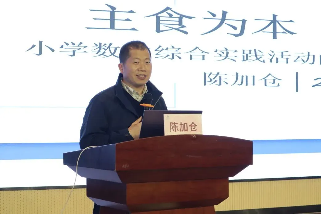 浙江省特级教师、正高级教师陈加仓老师为我们带来了讲座《主食为本 点心添彩——综合实践活动的实践路径与教学策略》。陈特长期深耕小学数学教学研究,对新教材、新理念、新课堂有着深刻理解与系统思考,他结合丰富的实战案例,为老师们深度诠释了如何将研中学与创中学落到实处,为我们用好新教材、深耕 “综合与实践”领域提供了专业引领与具体可行的行动策略。