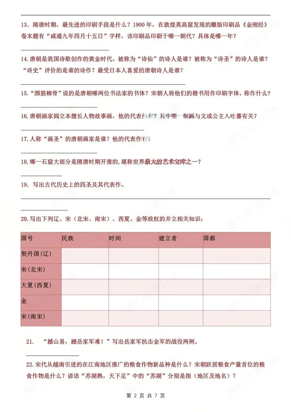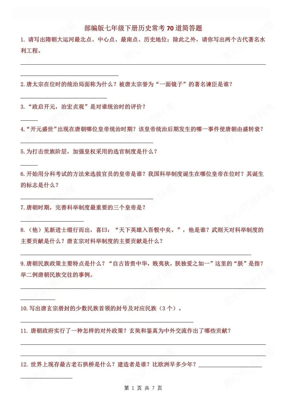题型背记,初中历史七年级下新教材初一下册,填空背记版,CLSH260273,