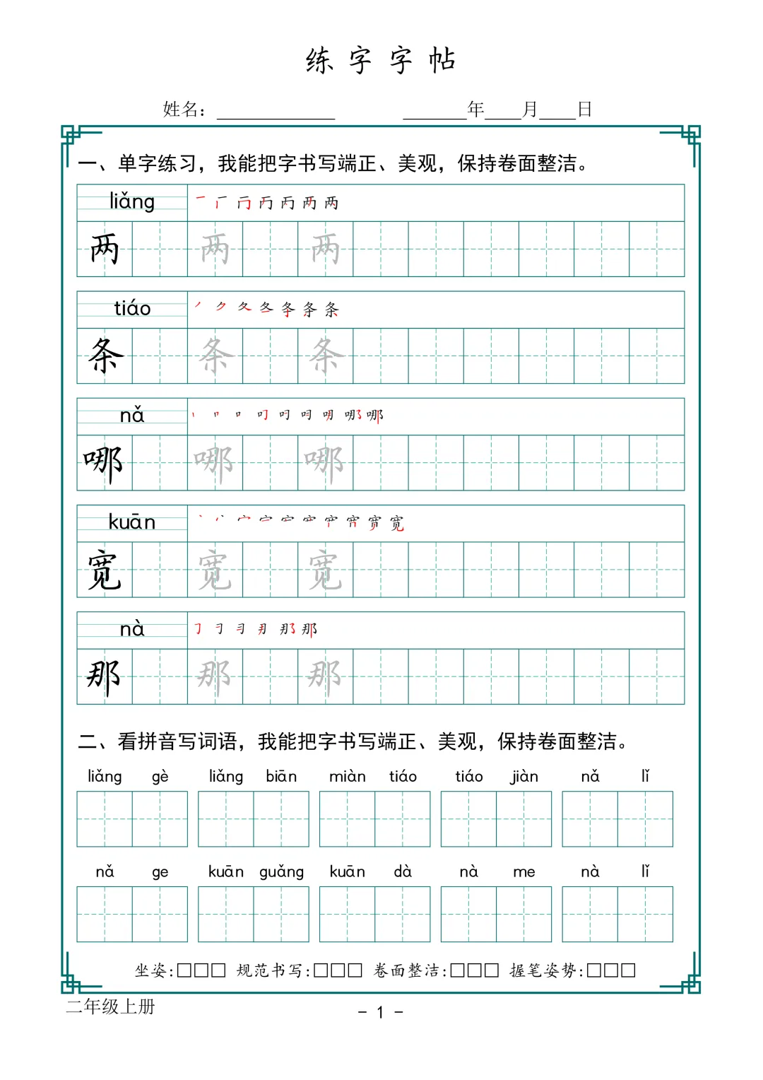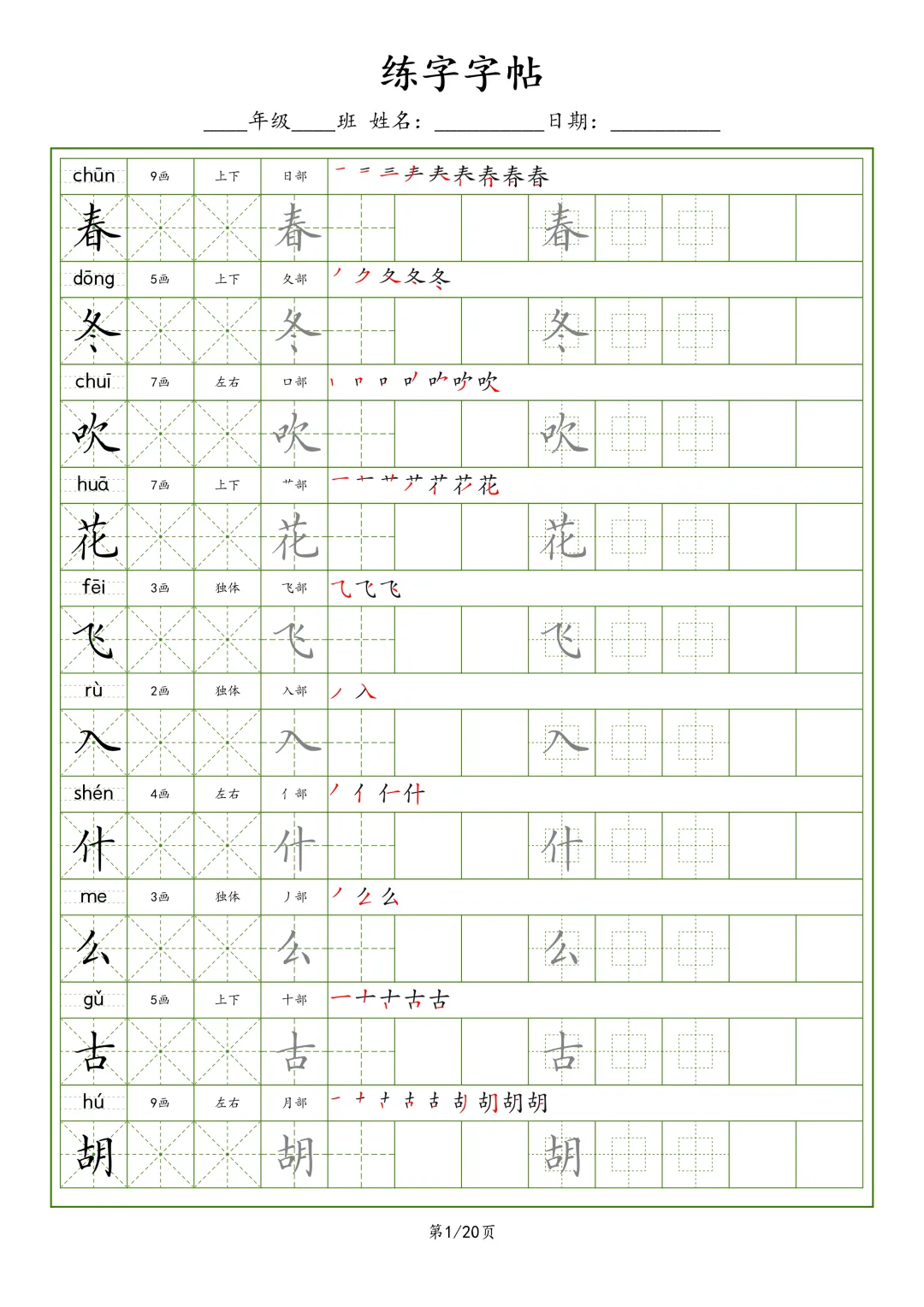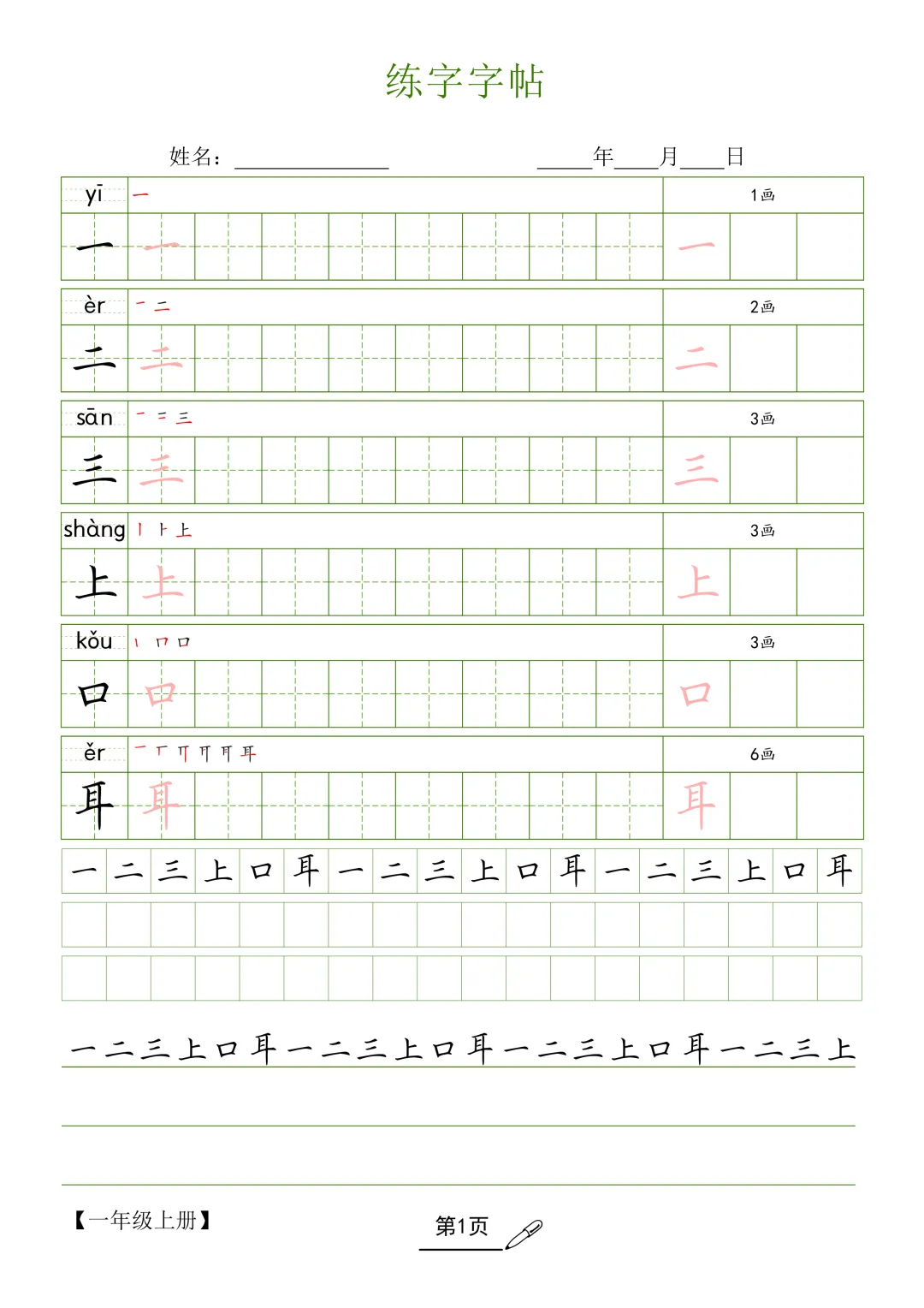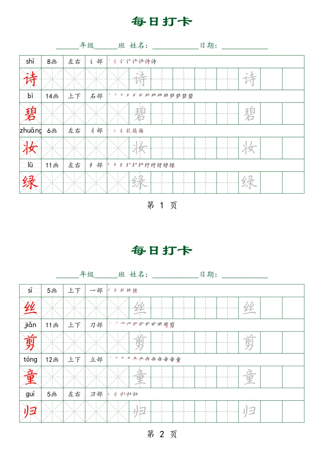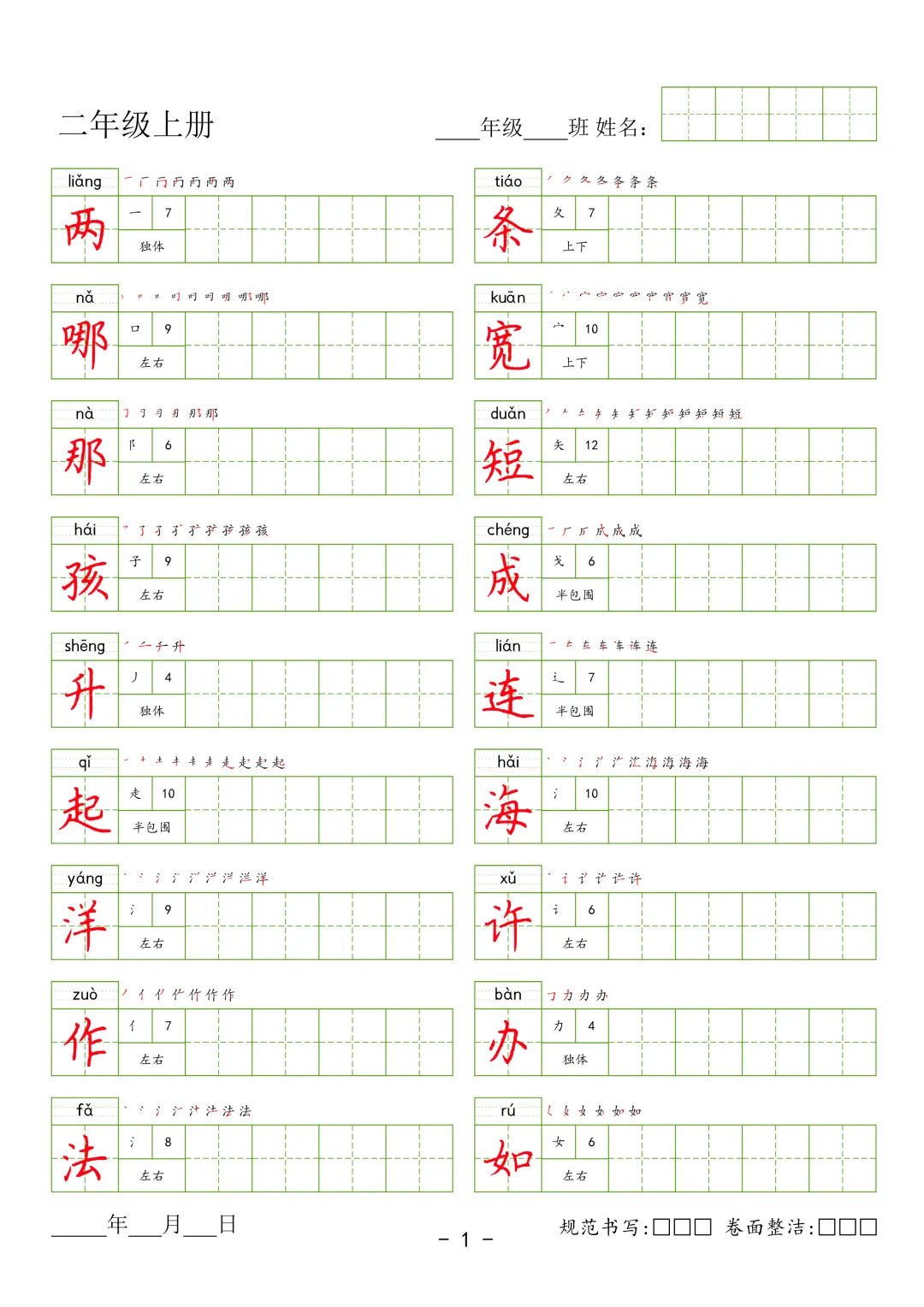 【G-1款绿格】1-6年级生字字帖pdf电子版