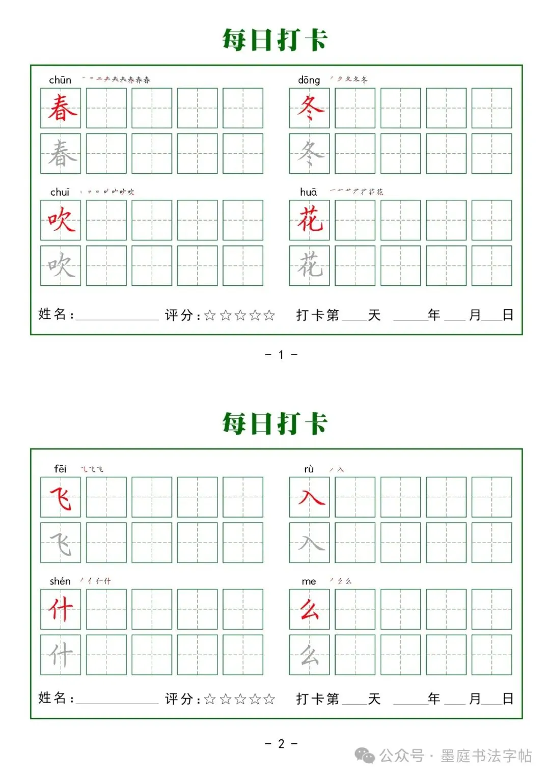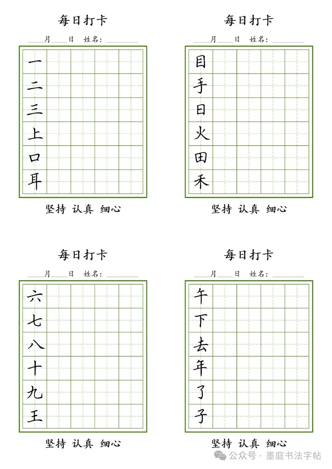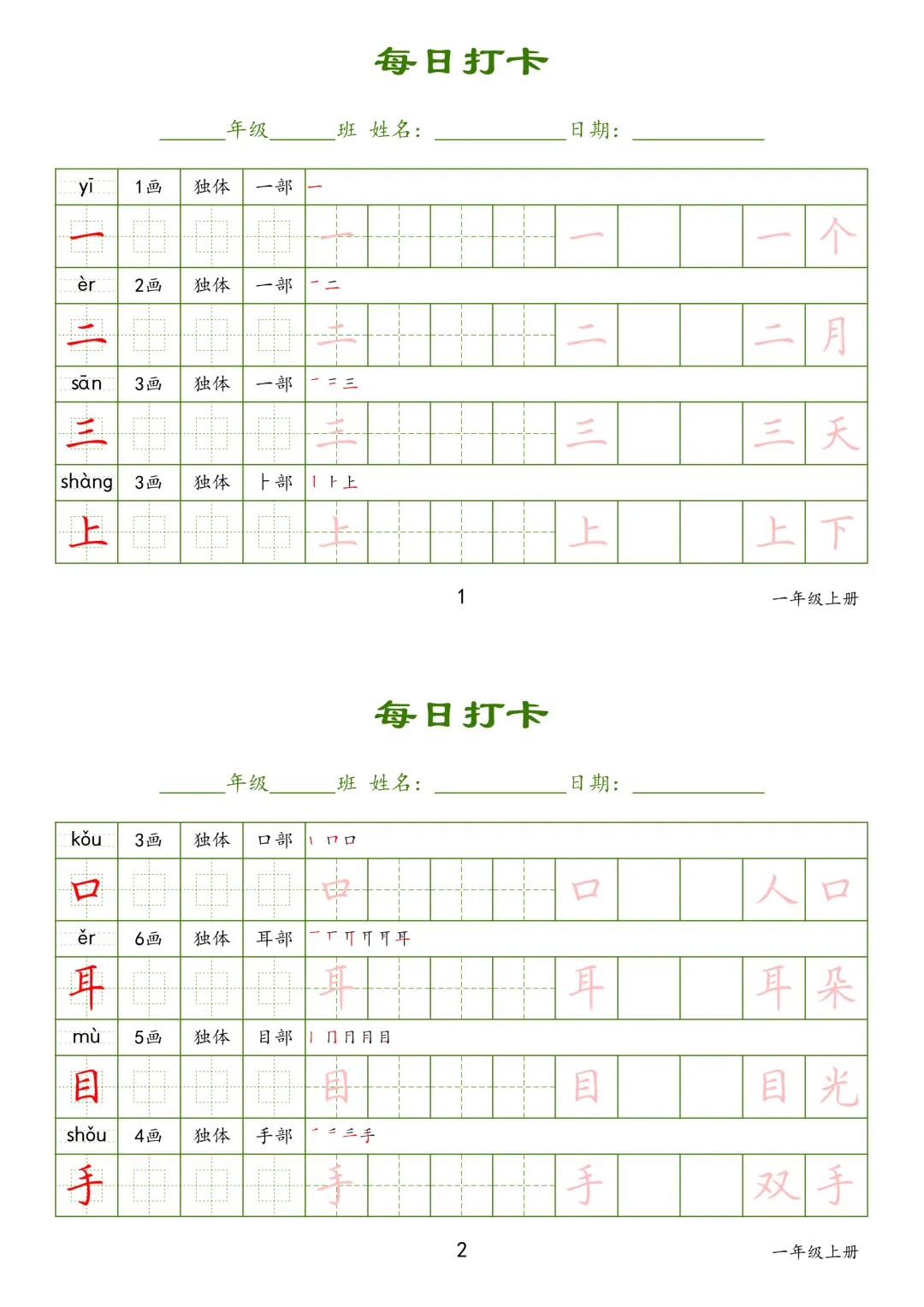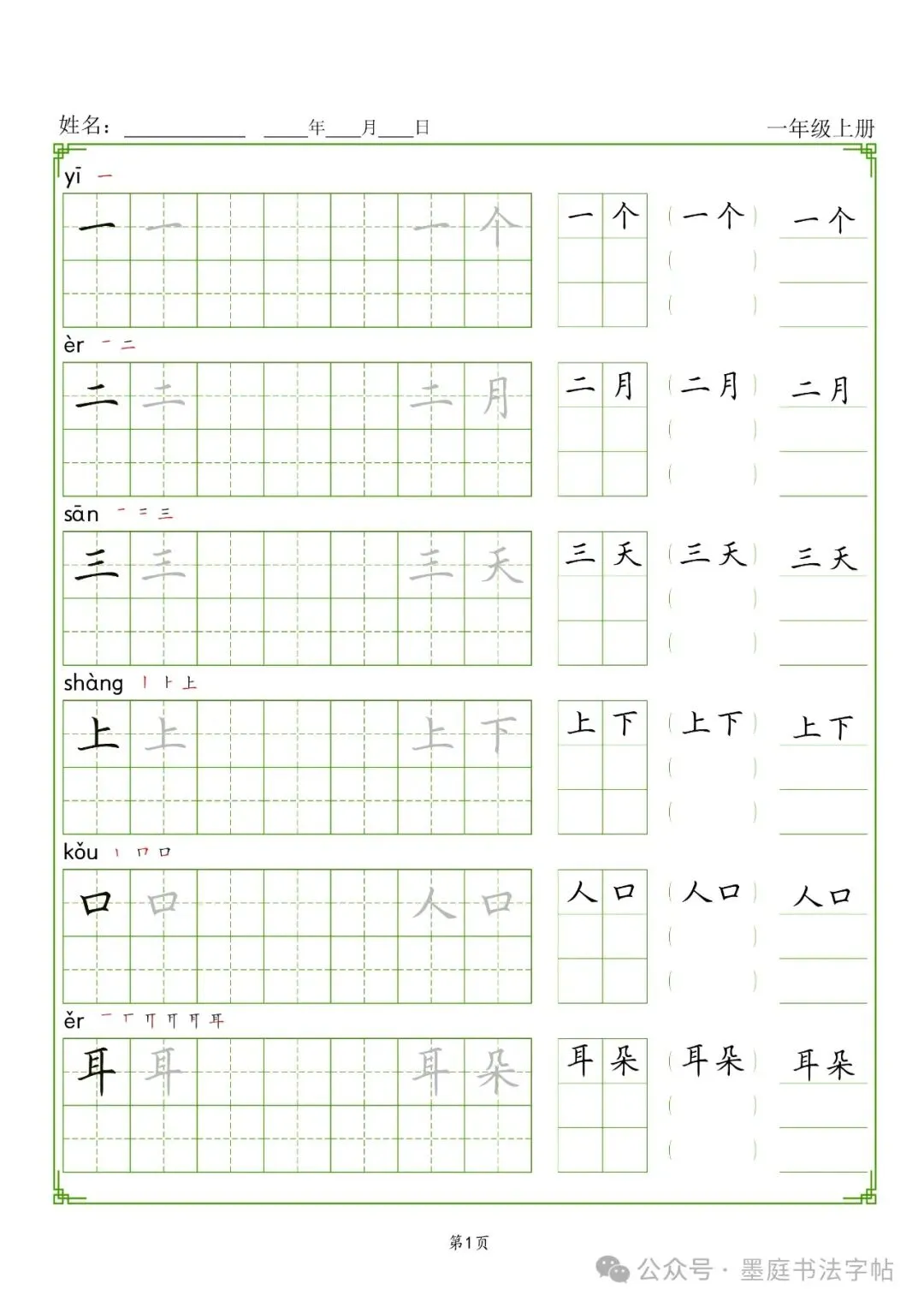 【G-1款绿格】1-6年级生字字帖pdf电子版