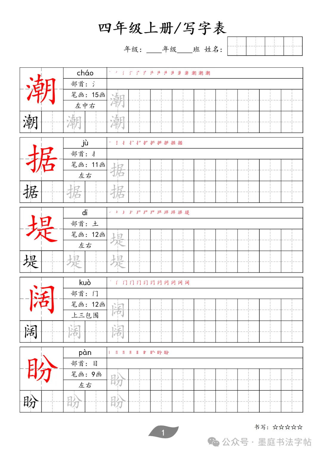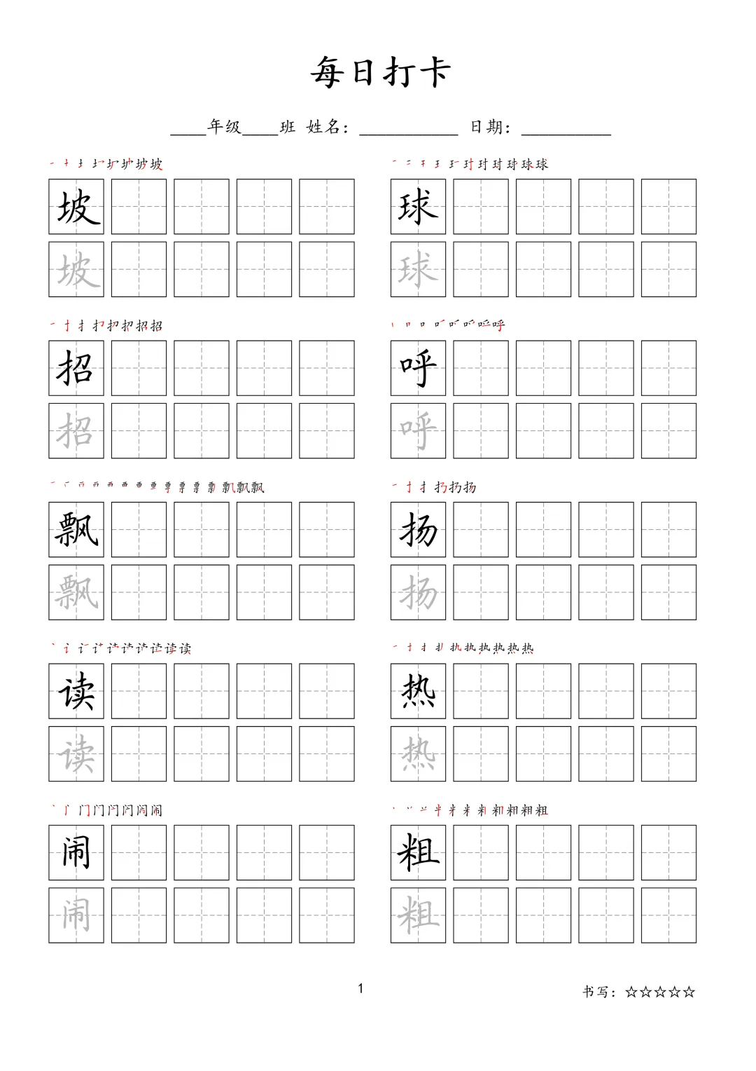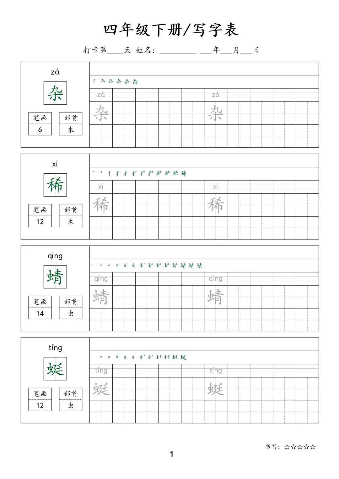 【F-1款】1-6年级生字字帖pdf电子版