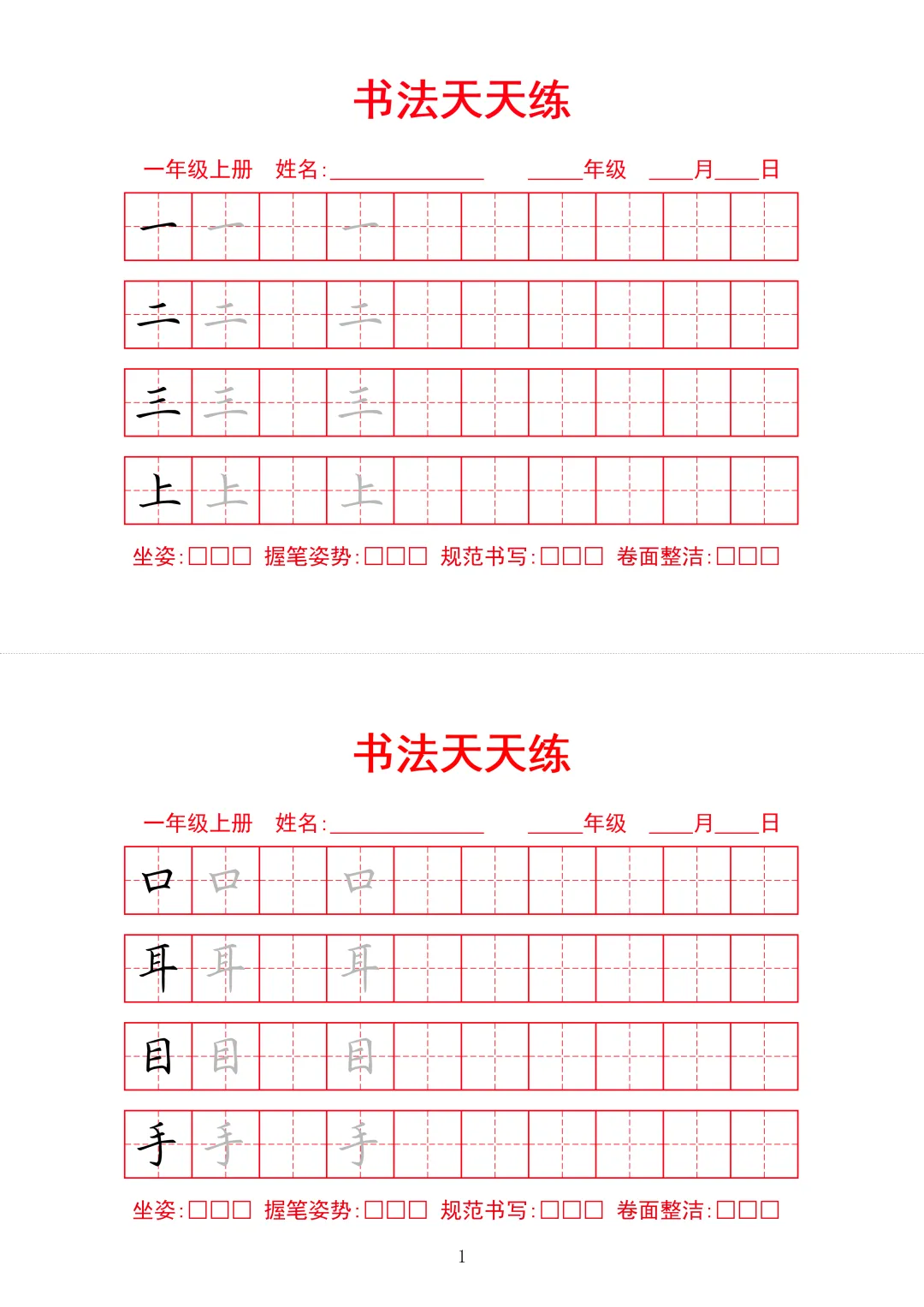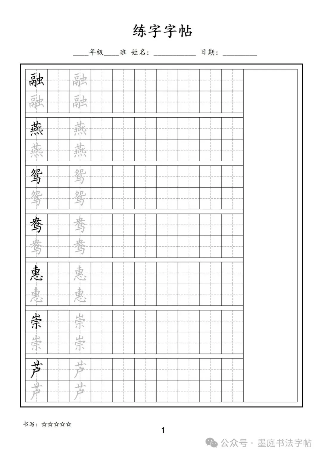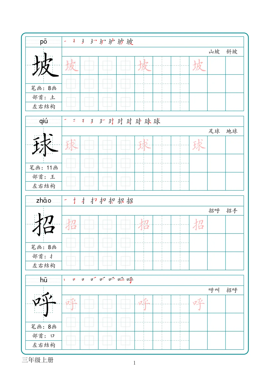 【F-1款】1-6年级生字字帖pdf电子版