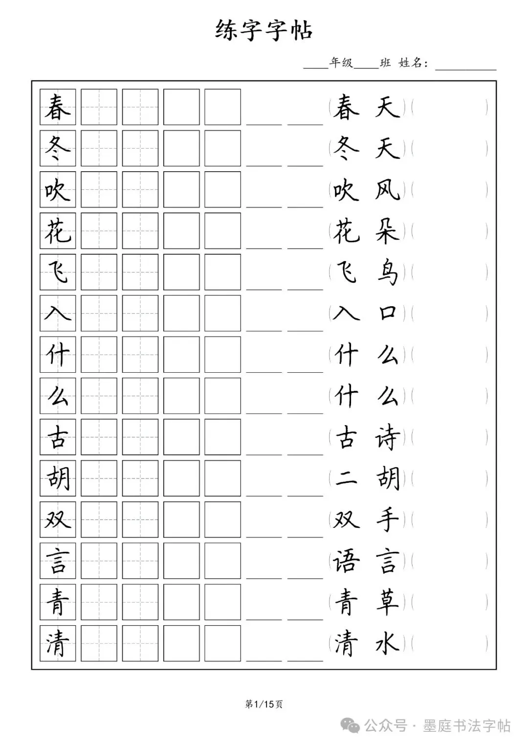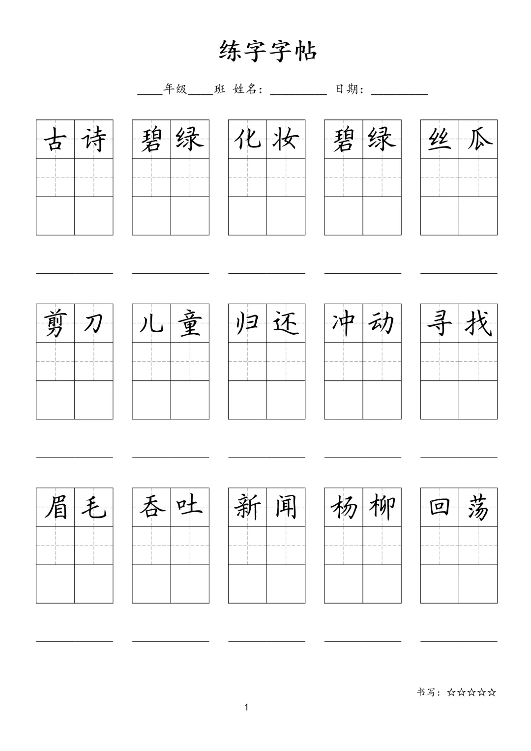 一二三四五六年级上下册多种款式田字格方格脱格横线格小学同步生字字帖电子版硬笔楷书教材机构可打印