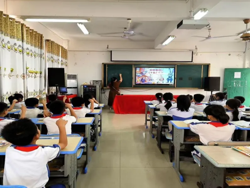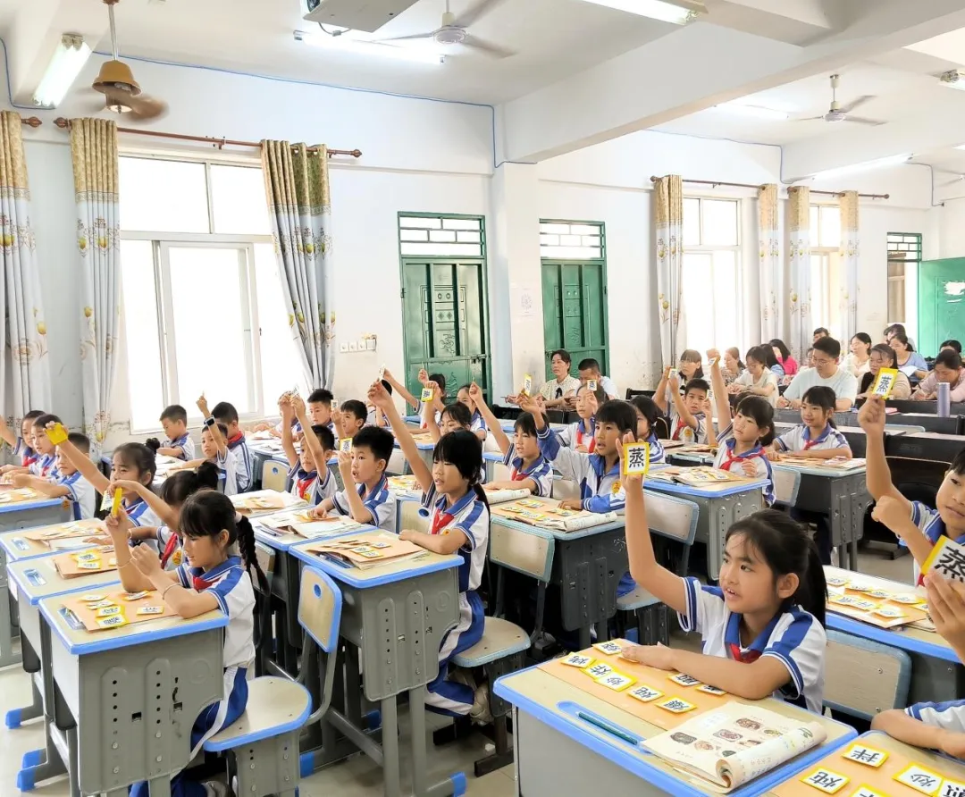 教学过程中,张老师以“美食”为情境主线,遵循低年级学生认知规律,善用AI数字人兔子警官激趣导入,设计了“菜单展览厅”“食材探秘园”“烹饪魔法坊”等三大主线任务,通过菜单认读、分类识记,引导学生认识素菜、荤菜、主食等各类美食名称;以图片为载体,串联花生酱、番茄酱、等生活常见酱料,落实生活识字;通过食材认读、分类、烹饪方法梳理,结合“菠、茄、蘑、菇、葱”等形声字规律,帮助学生掌握识字方法,同时渗透“火字旁、四点底”与烹饪的关联,实现识字与生活、文化的深度融合。整堂课生动有趣,以学生为主体,通过观察、朗读、表达、实践等多元活动,让学生在美食情境中快乐识字,充分体现了“生活即语文”的教学理念。