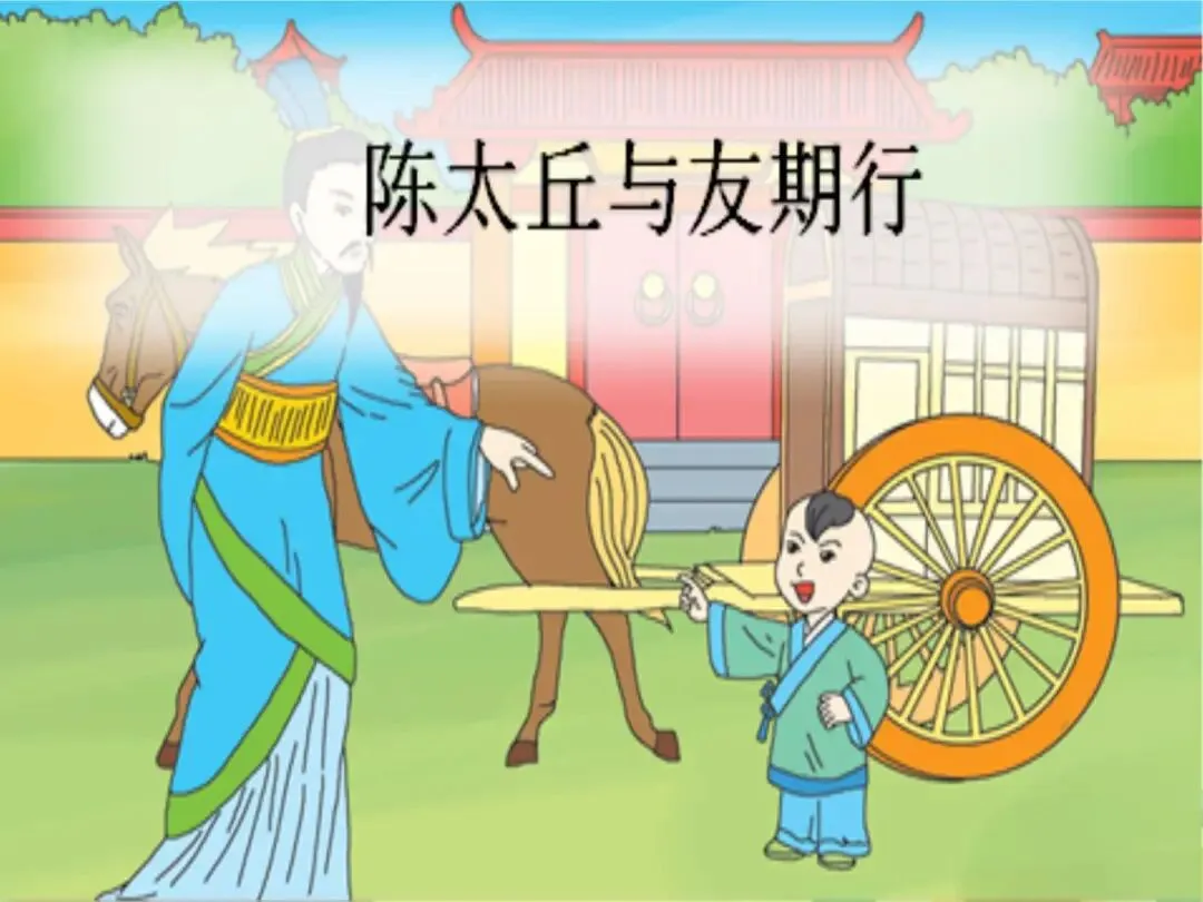 《陈太丘与友期行》,友无故迟到,“太丘舍去”。面对友人的无礼指责,时年七岁的陈元方针锋相对,让友人惭,有力的维护了父亲的尊严,显示出高超的辩论智慧。