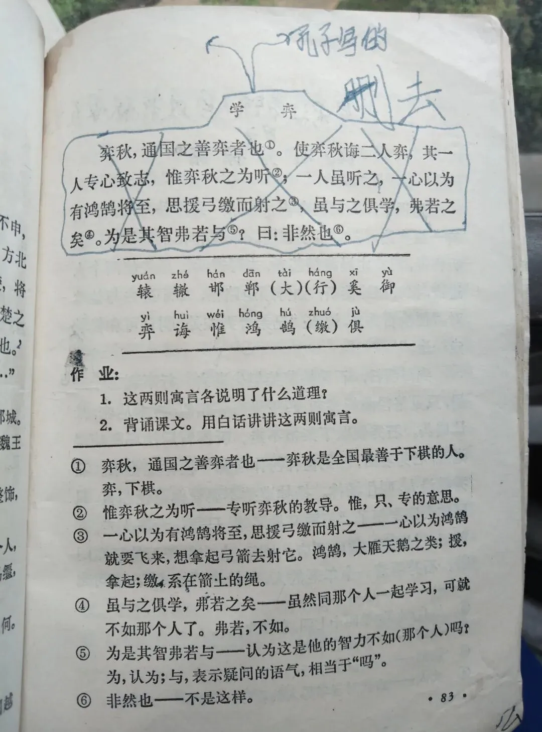 1974年,全国开展“批林批孔”运动,作为一名小学生,只能按照老师的要求去做,当时师生最大的“实惠”是大家最怕学的课本里的文言文被删除,不用学了,但增加的任务却是要求学理论、写自己都搞不懂的批判文章,老师也知道学生不懂,所以会在黑板上抄一些报纸“社论”上的内容,学生即使写,也只能大段大段抄报纸上的内容,在我的初中作文(后续会分享)里就可以看出来。今天分享的就是五年级下册语文课本里的《南辕北辙》《学奕》,现在看到当年删除的痕迹,对那段历史有一个更直观的了解。往期内容: