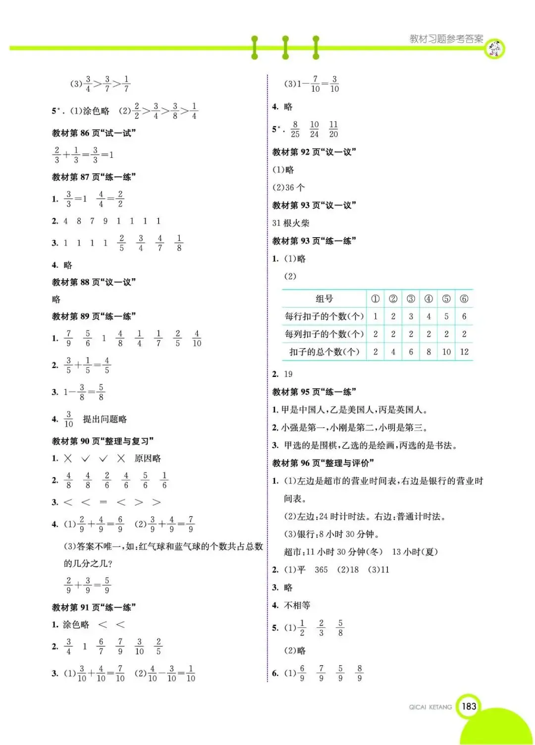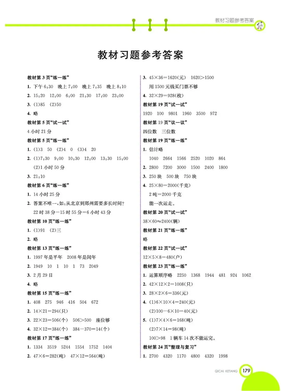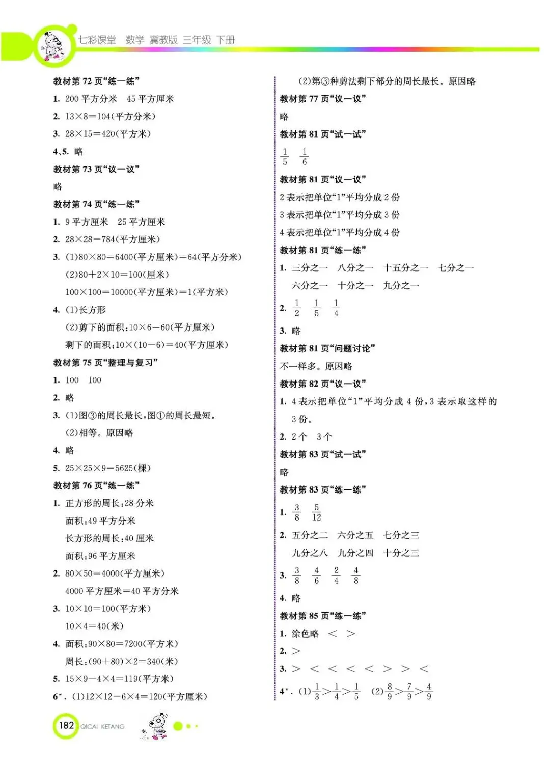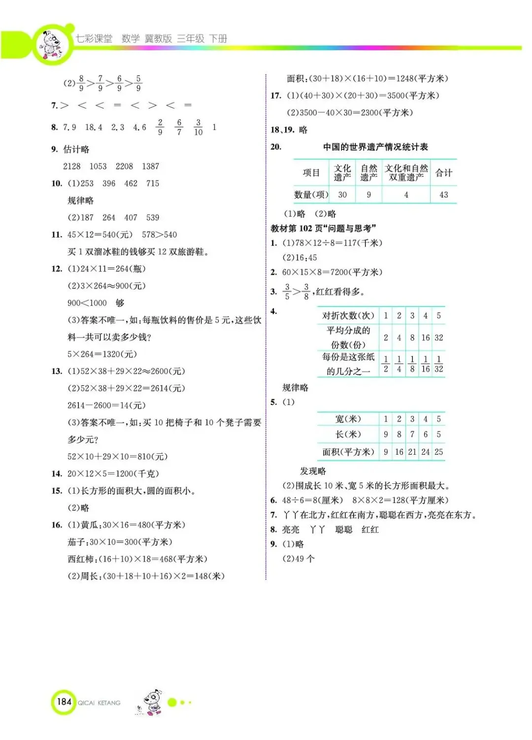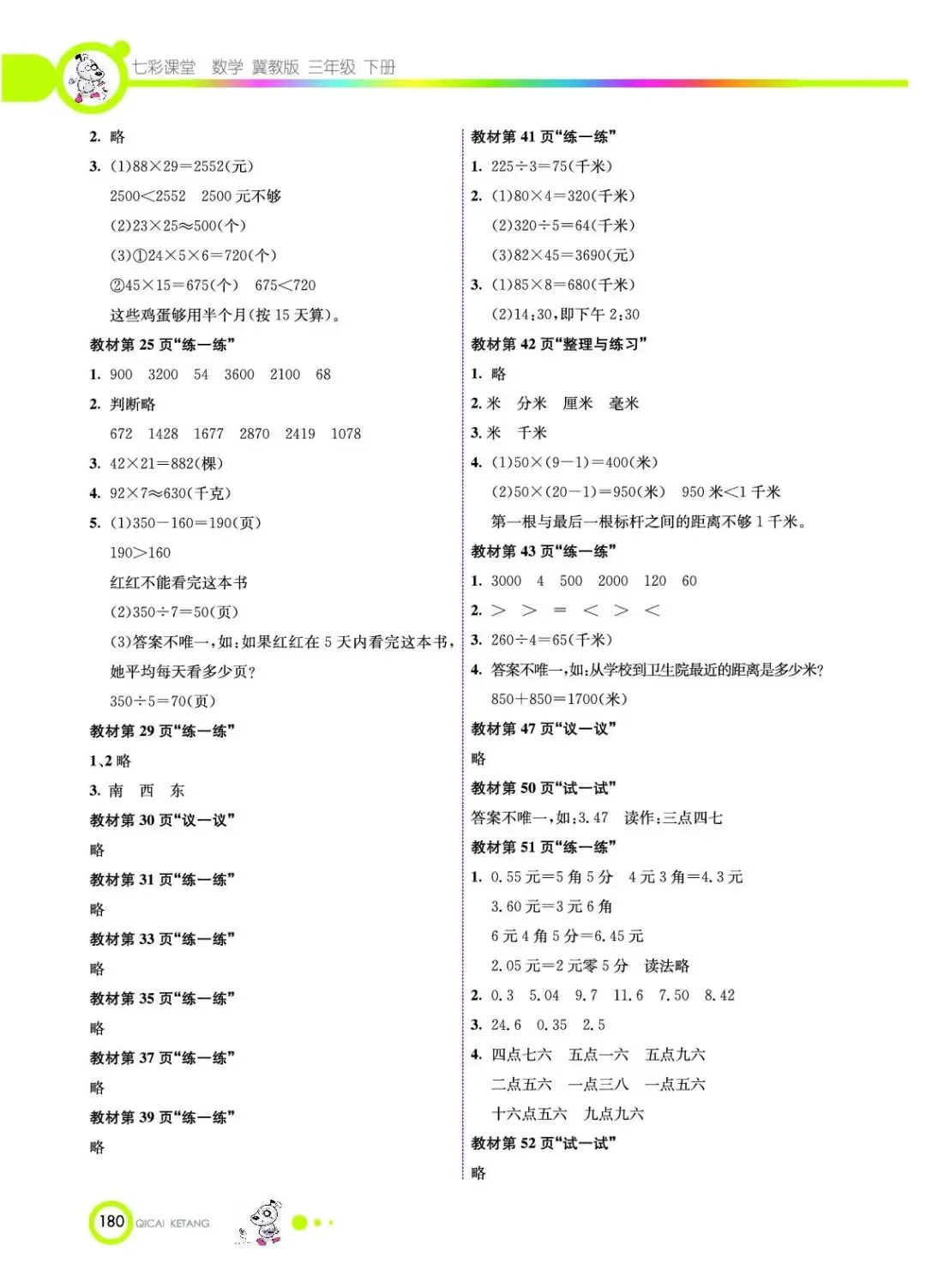 >小学教材习题答案三年级下册3年级下册冀教版数学课本参考答案冀教版