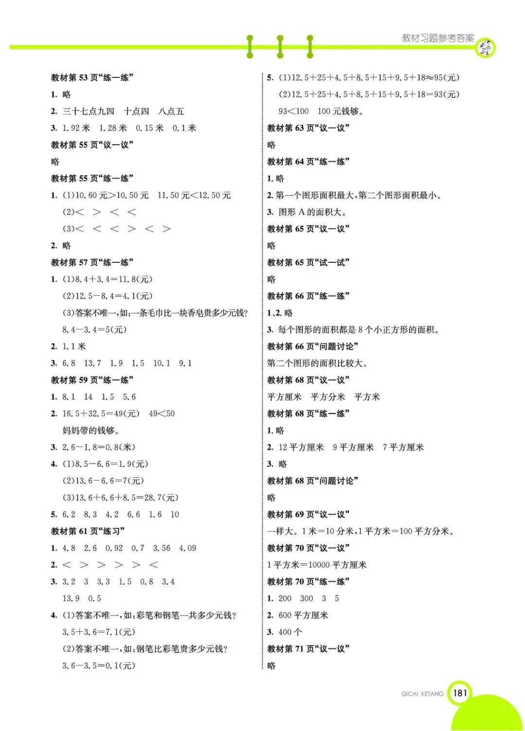 小学教材习题答案三年级下册3年级下册冀教版数学课本参考答案冀教版