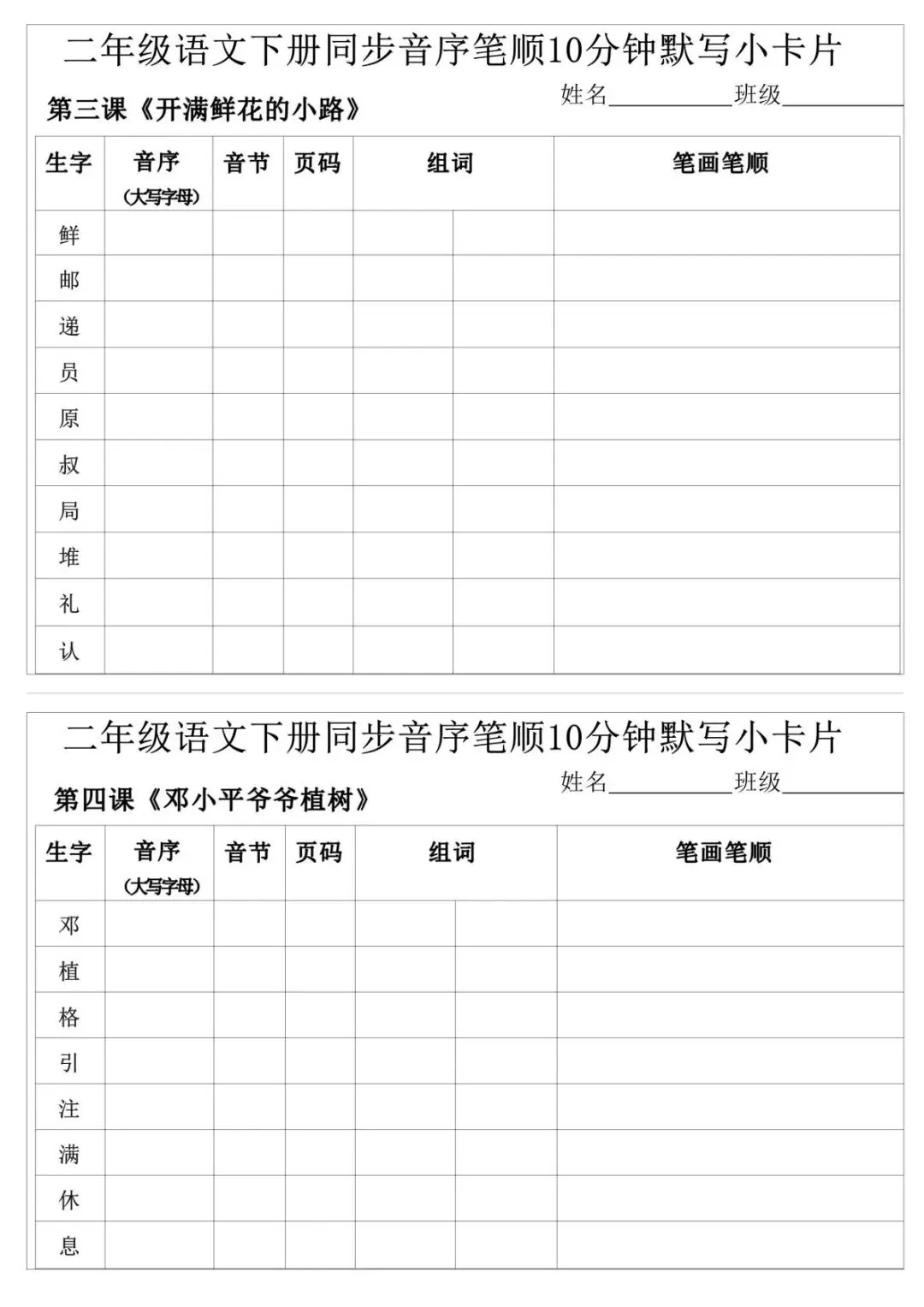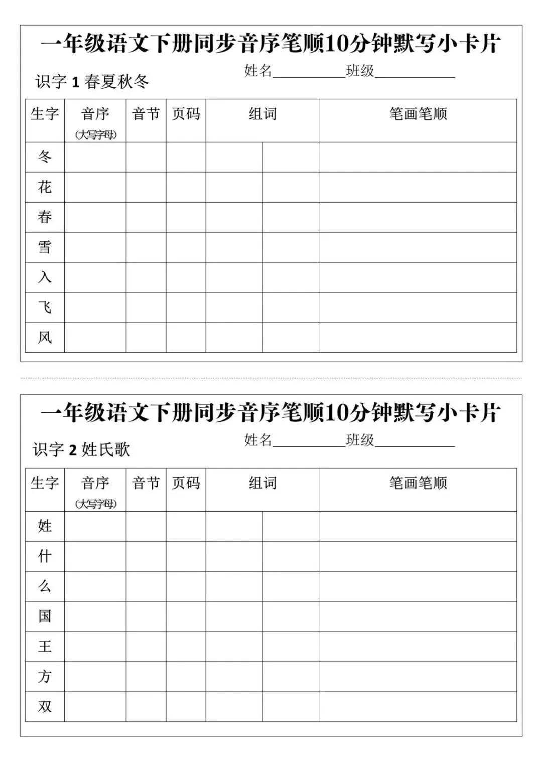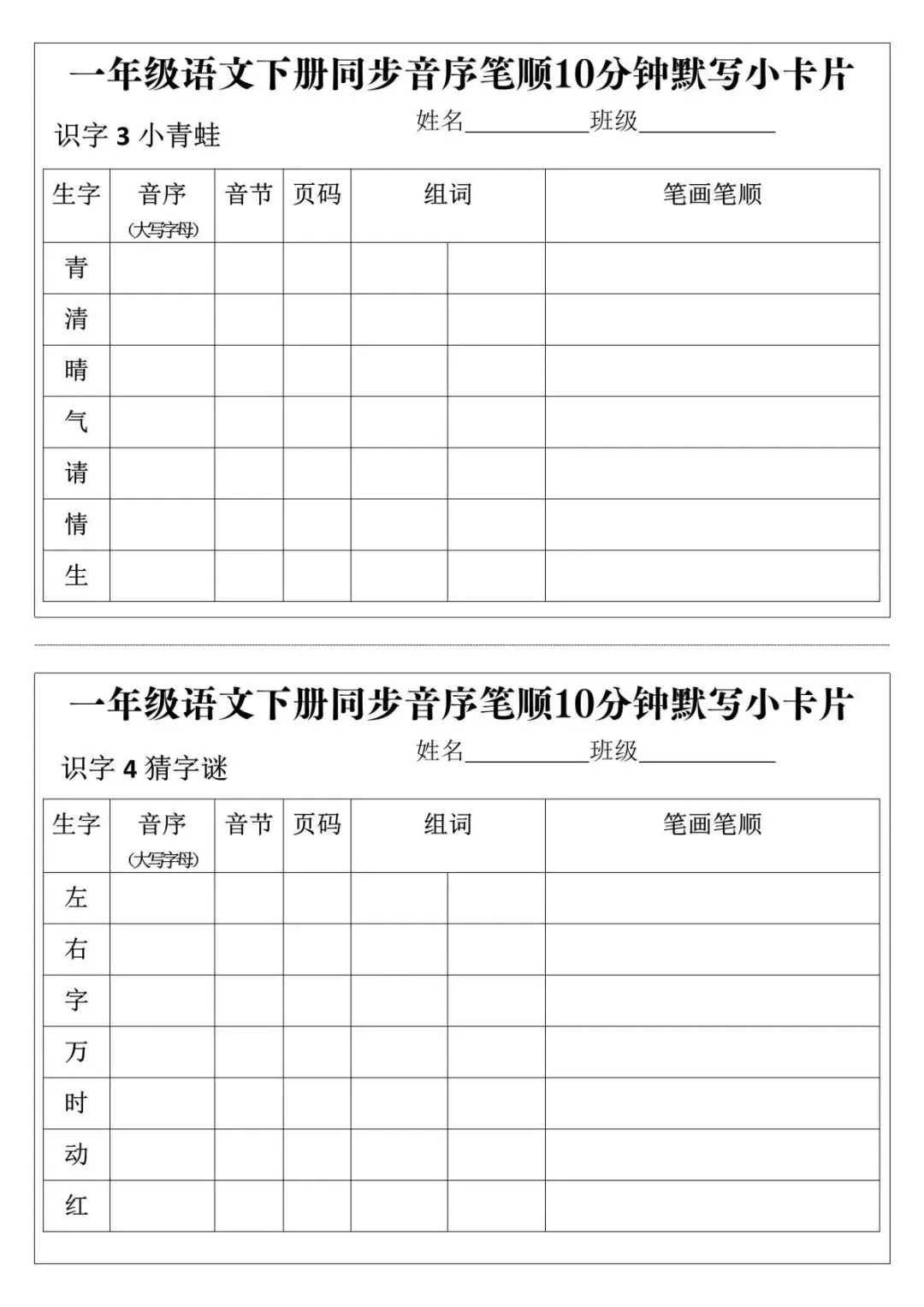 今日分享的是:小学语文《课本同步笔顺默写卡》1-6年级下册 ,电子版可下载打印。