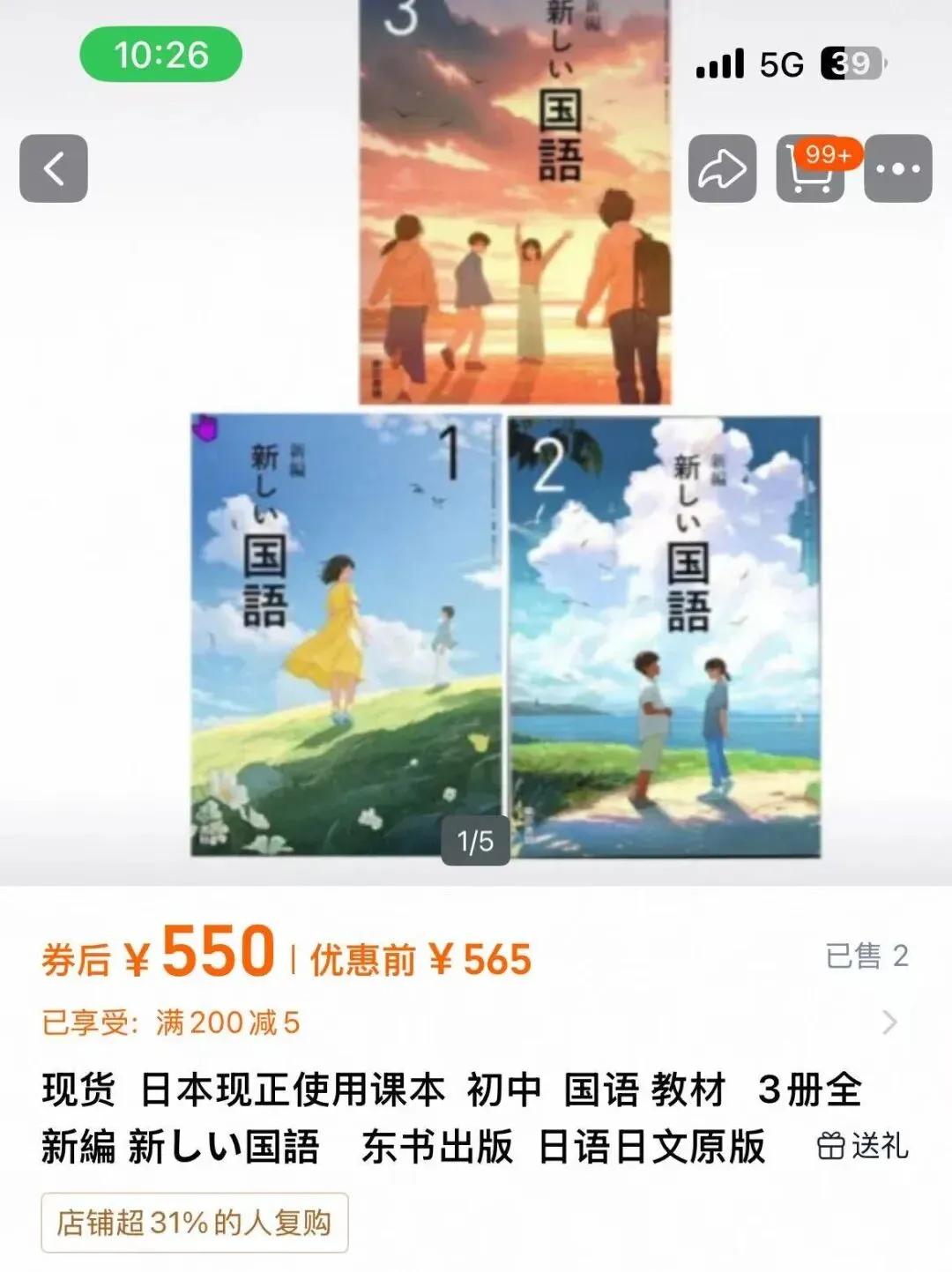 日语原版书 日本初中语文课本教材少量到货啦!最新版的【新编 新しい国語】 123年级 刚到了一小批现货! 低于市场价太多,全新正版 非偏远地区1公斤以内10元运费~ 正在学日语的小伙伴别错过!目前库存情况: 【新编 新しい国語1】5本 【新编 新しい国語2】4本 【新编 新しい国語3】4本另外还有两本旧版的初中2年级和3年级教材各一本,绝版啦~两个版本,同一出版社,原来的版本页数稍微多一点,新版略少一点。