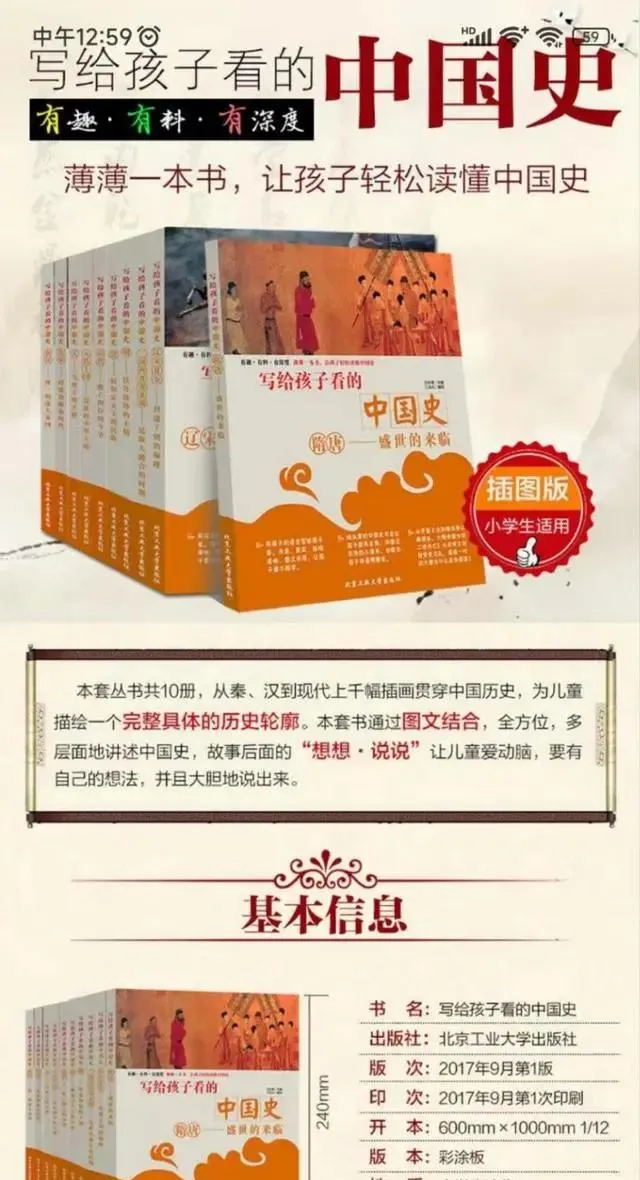 查了查,这套《写给孩子看的中国史》不是小印刷厂搞出来的,大出版社,十本一套,全国畅销,宣传语写得漂亮,“薄薄一本书,孩子轻松读懂中国史”,可惜审核不细,插图乱进,谁知道还有多少地方藏着暗雷,说难听点,这事要是没人盯,孩子们一个个都被当成糊涂蛋带过去。