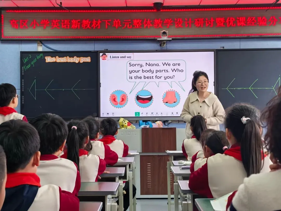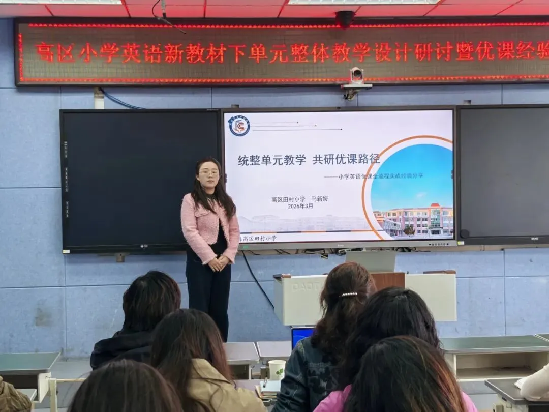 为深入推进小学英语新教材落地实施,助力教师精准把握教材编写理念,深化单元整体教学实践,共享优质课例经验,近日,高区小学英语“新教材下单元整体教学设计研讨暨优课经验分享”活动在田村小学成功举办。全区小学英语专职教师及任教三年级的兼职教师齐聚一堂,共研教学新路径。