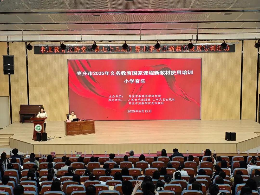 为切实增强广大教师对课程理念、课程标准及新教材的理解与运用能力。9月19日,枣庄教育大讲堂(第七十三期)暨枣庄市2025年义务教育国家课程小学音乐新教材培训会议在枣庄市实验学校龙吟校区举行。