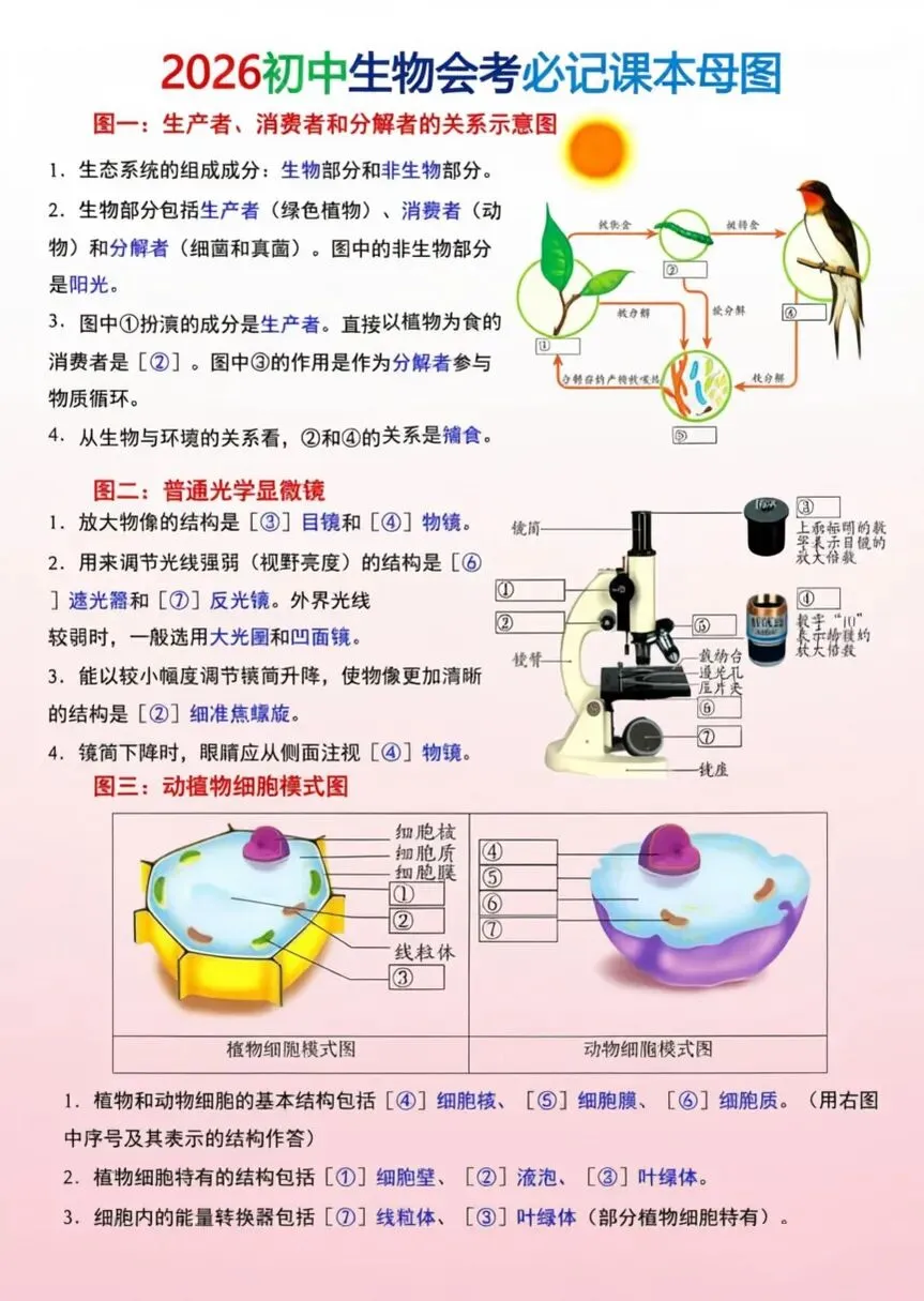 合格考等级考必备!上海高中生物5册教材知识点背默小卡片