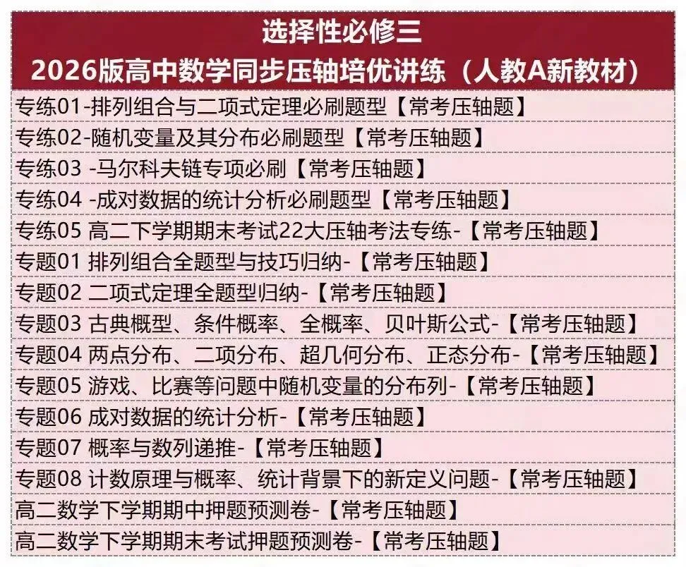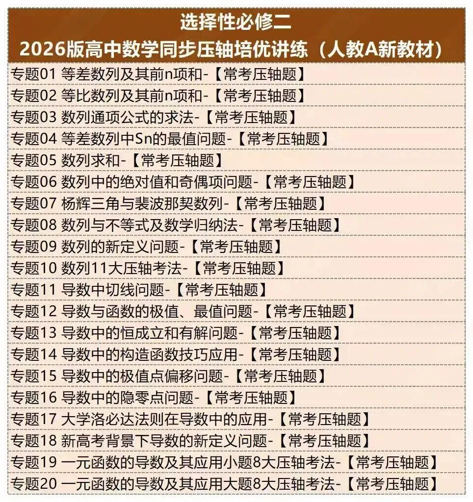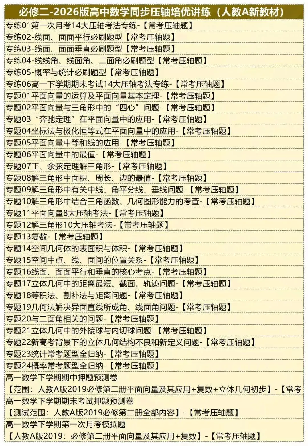 📚📚详情:⭐必修第一册33专题+期中期末,解题知识必备、压轴题型讲练、压轴能力测评。⭐必修第二册24专题+月考期中期末,解题知识必备、压轴题型讲练、压轴能力测评。⭐选择性必修第一册12专题,解题知识必备、压轴题型讲练、压轴能力测评。⭐选择性必修第二册20专题,解题知识必备、压轴题型讲练、压轴能力测评。⭐选择性必修第三册8专题+期中期末,压轴题型讲练、压轴能力测评。打包网盘或者邮箱发送