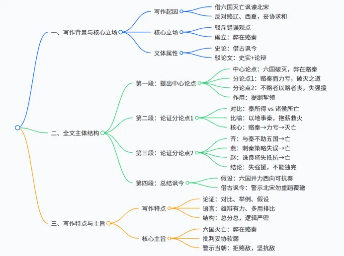 (标题点明文体与论述对象。“六国”指战国时期除秦之外的齐、楚、燕、韩、赵、魏六国;“论”是议论文体,表明文章旨在对六国灭亡这一历史事件进行理性分析和评论。)