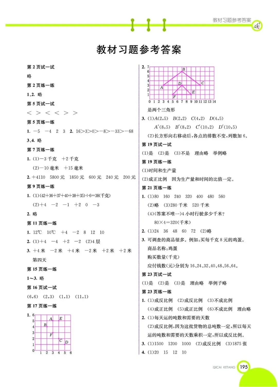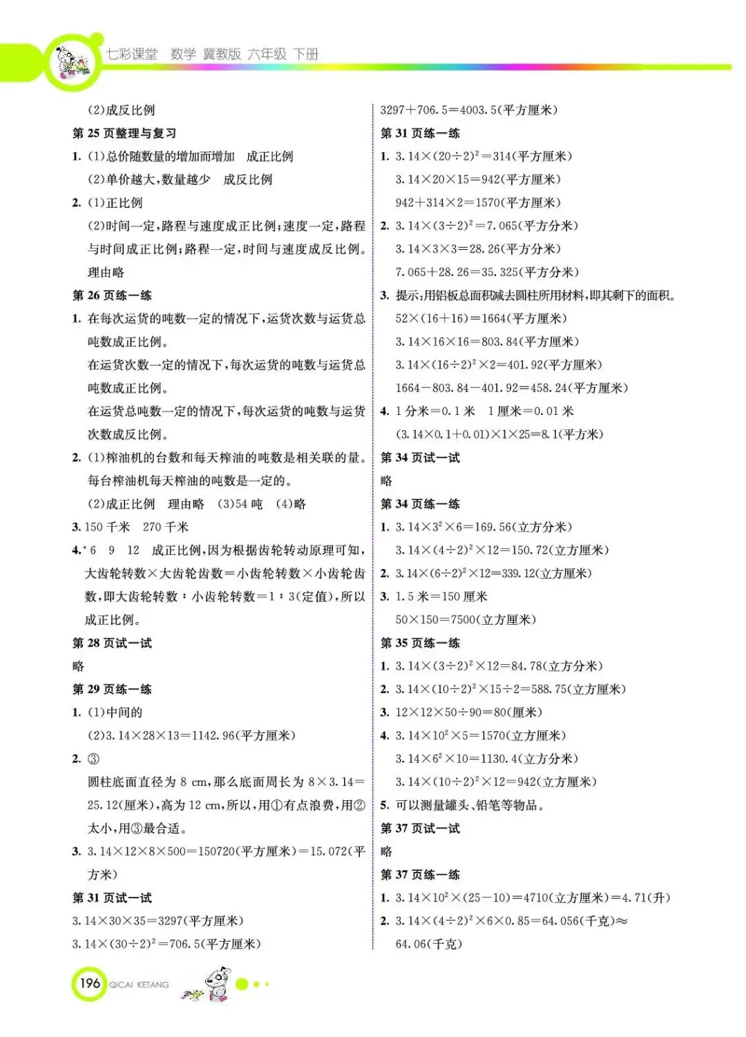 小学教材习题答案六年级下册6年级下册冀教版数学课本参考答案冀教版
