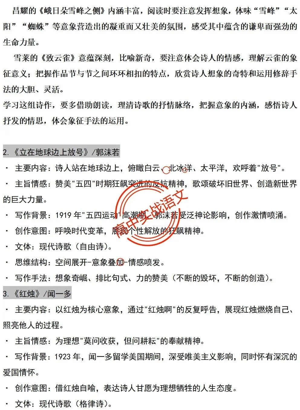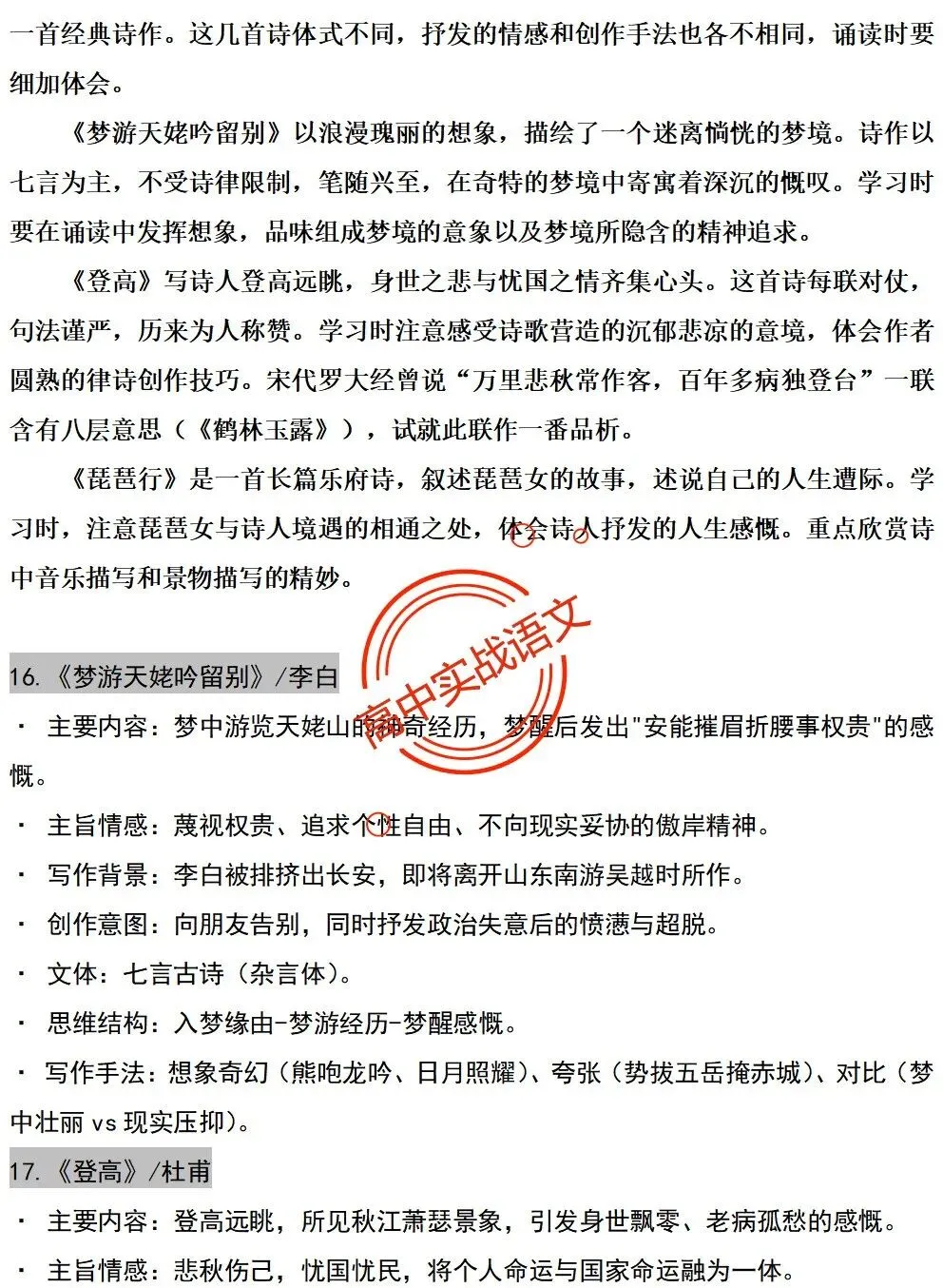 【知识清单】 古诗鉴赏(150+页)【全15个板块】