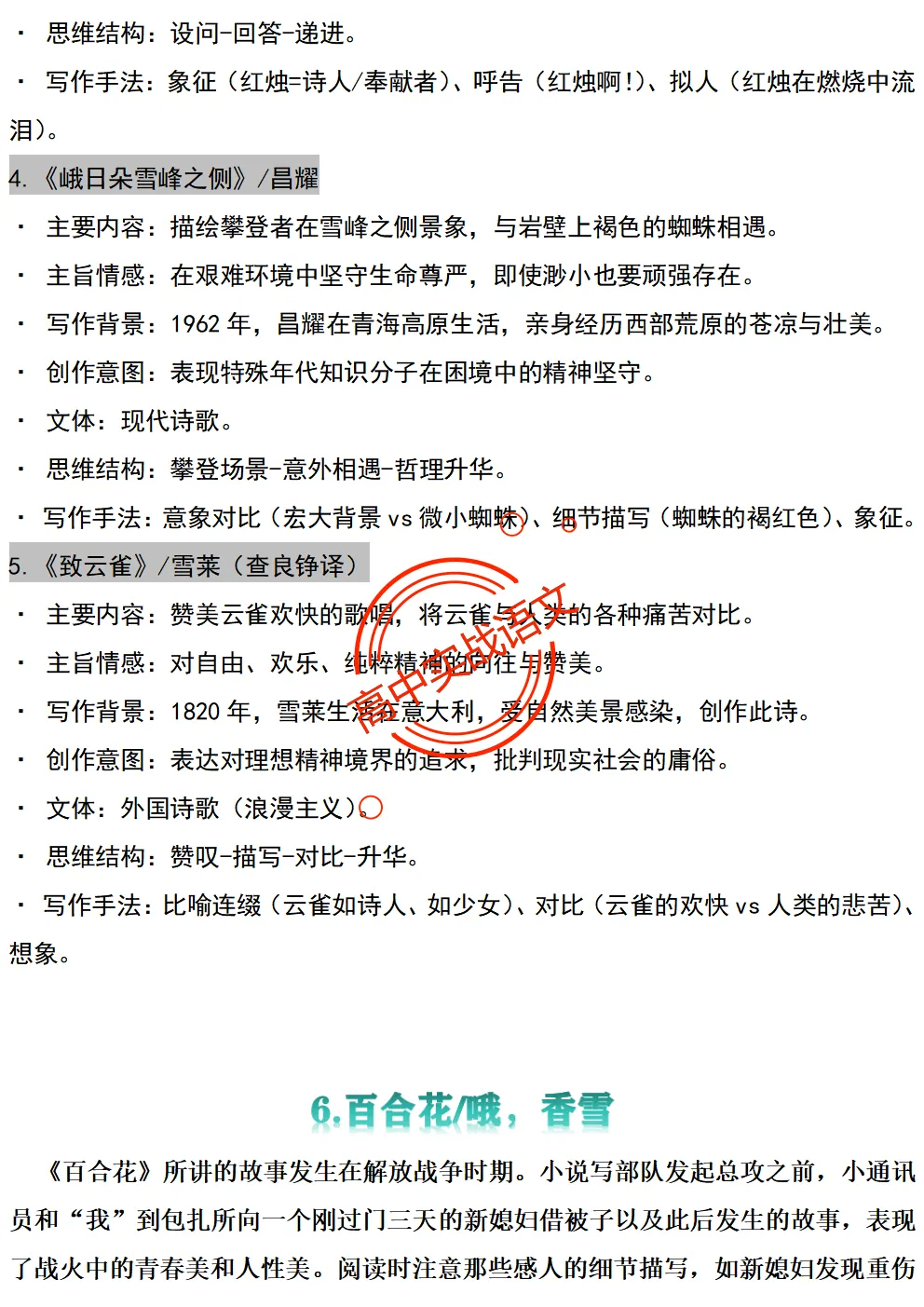 【一文讲透】小说散文诗歌【知识清单+答题模板】