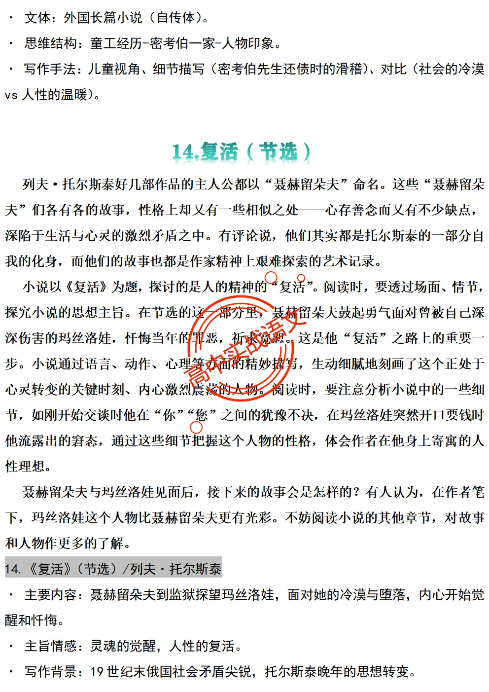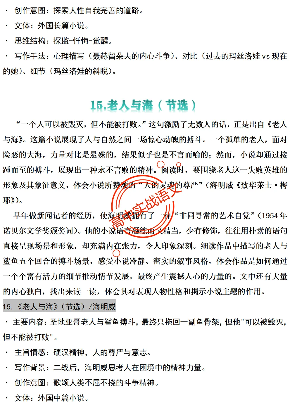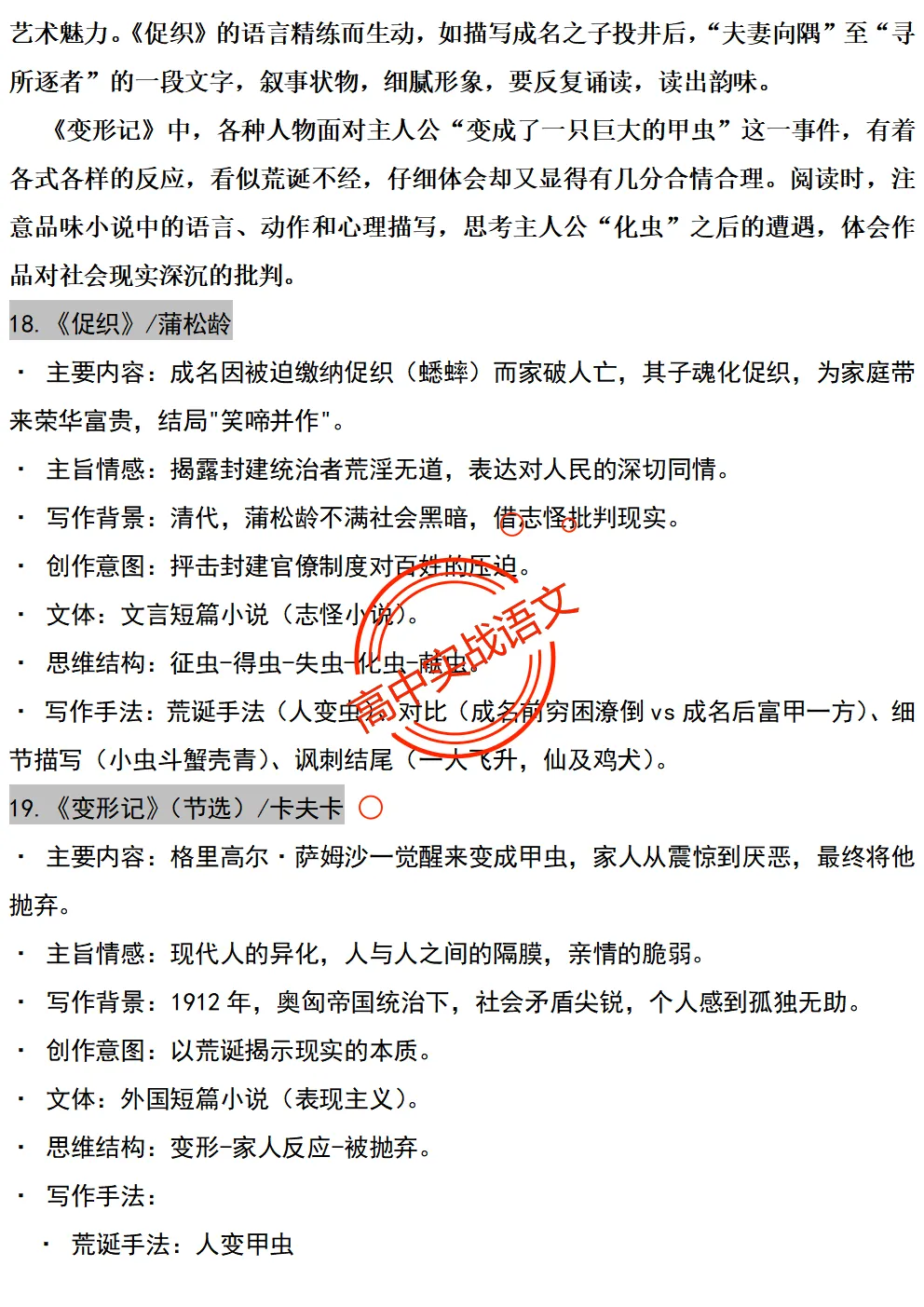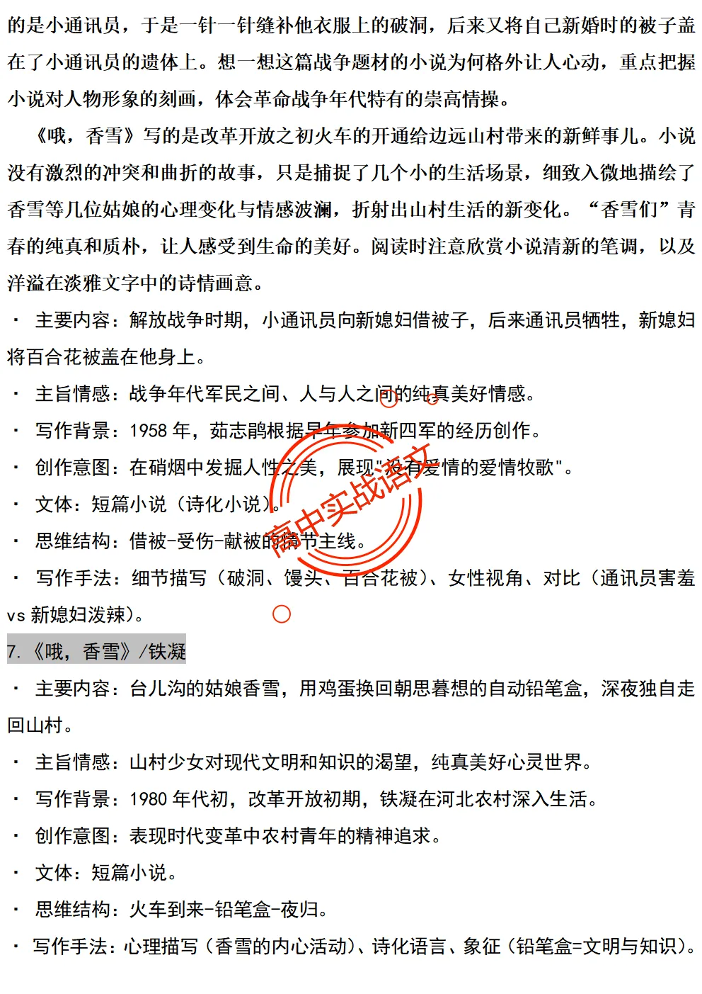 【深度整合】小说散文【重要考点】全梳理,附模考